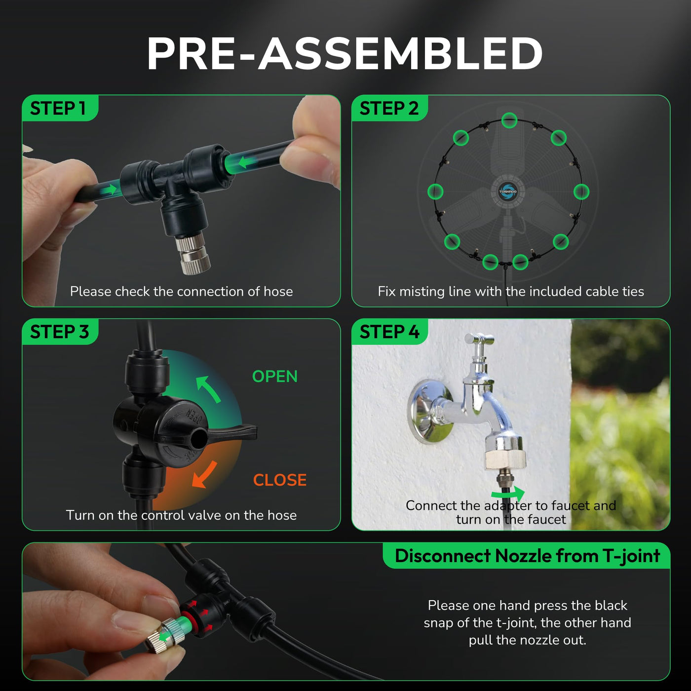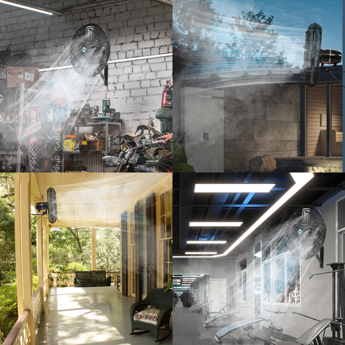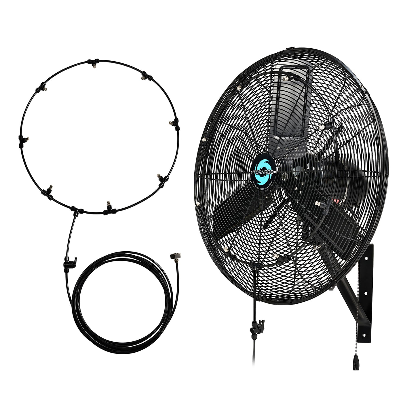 Tornado 24 Inch High Velocity Oscillating Wall Mount Fan With Pre-Installed Misting Kit - Ipx4 Water-Resistant, Teao Motor, 2-Sp