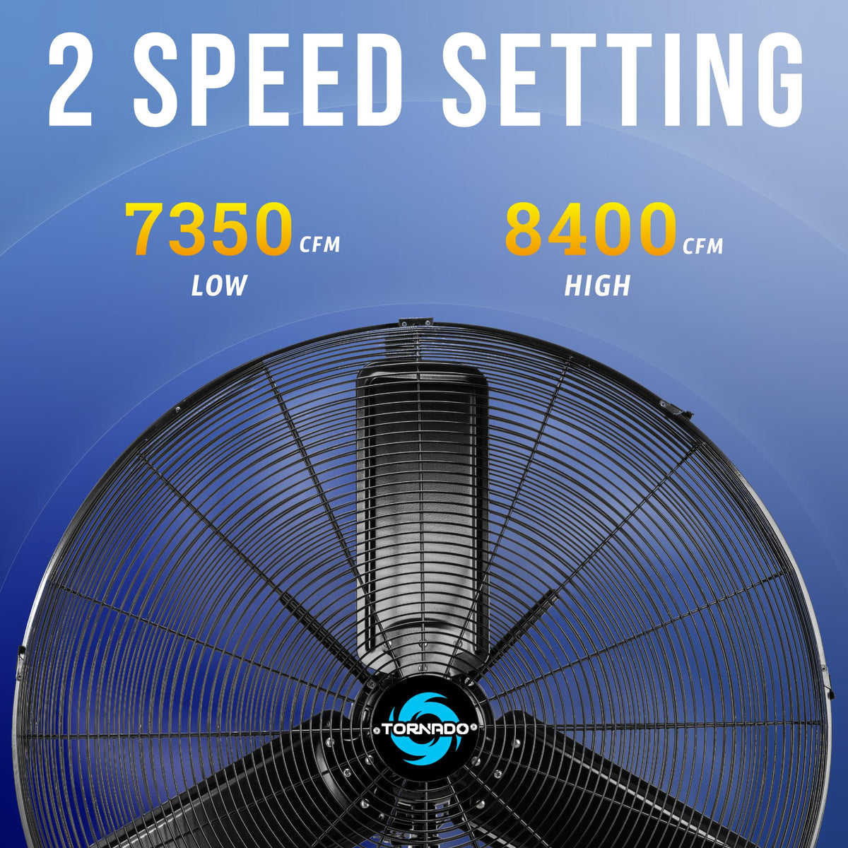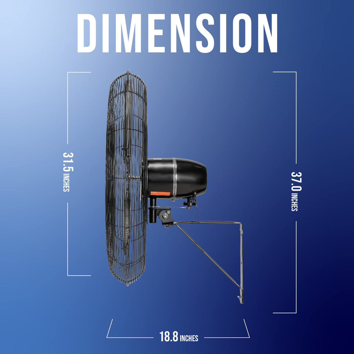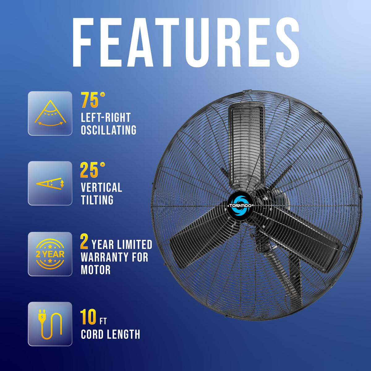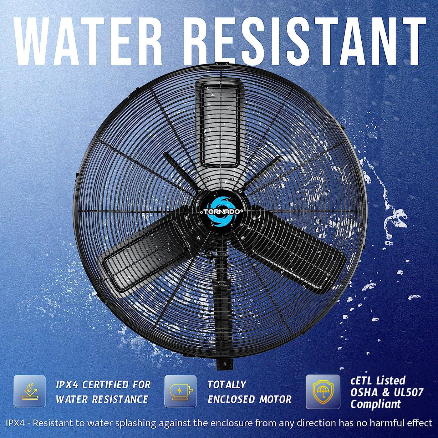 Tornado 30 Inch Outdoor Rated Ipx4 Water-Resistant High Velocity Oscillating Wall Mount Fan For Industrial Use Teao Motor 2 Speed 8850 Cfm Ul Listed