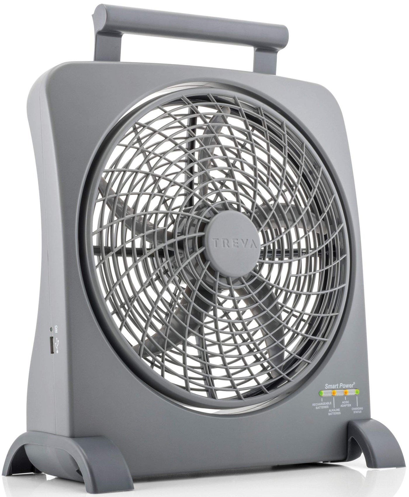 Treva 10 Inch Rechargeable Portable Fan Smart Power Air Circulator. Plug In Ac Adapter And Battery Powered, Usb Charging Port, F