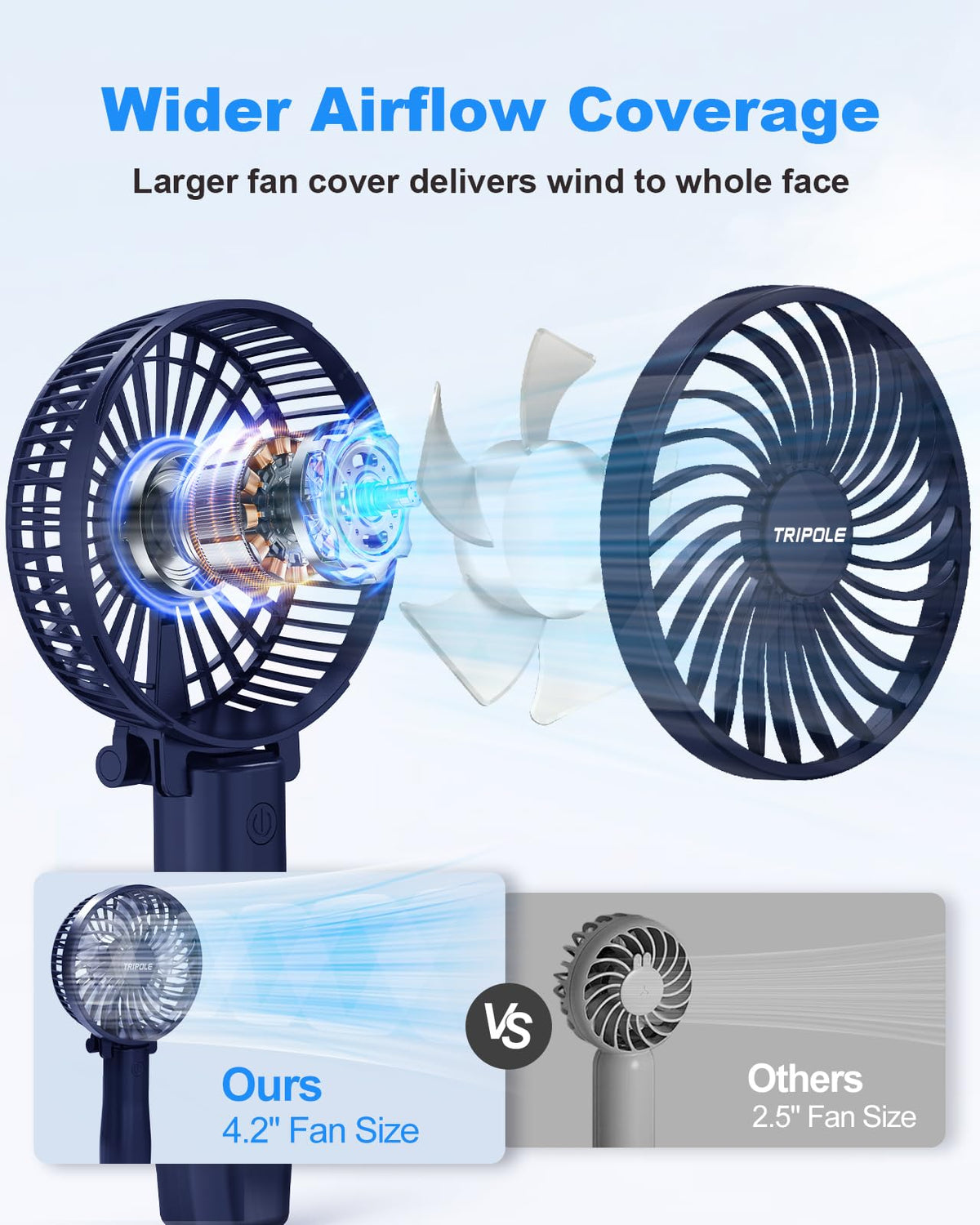 Tripole Handheld Fan Foldable Mini Fan, 3 Speeds Portable Small Personal Fan, Rechargeable Usb Desk Fan, Powerful Hand Held Fan