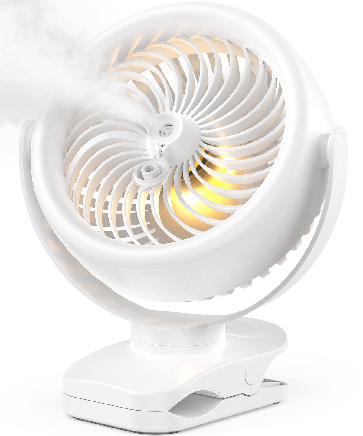 Made From Sturdy And High-Quality Materials, The Tyzu Portable Fan Is A Uniquely Designed Clip-On Mist Fan.Our Mist Fans Have 4 Wind Speeds And 2 Spray Modes To Meet Your Needs. The Fan Combined With The Spray Can Quickly Cool You And The Surrounding Space, Easily Achieving Cooling Purposes.This 7-Inch Clip Fan Can Rotate 360 Horizontally And Vertically, And Is Equipped With 2 Light Modes And Timer Settings, Making It Ideal For Sleeping At Night And Creating A Cool Sleeping Environment.Suitable For Both Indoor And Outdoor Use And Easy To Carry. When You Are In A Camping Tent, In The Office, In A Golf Cart, On A Treadmill, In A Dormitory, You Will Really Need A Personal Mist Fan Like This.Built-In Rechargeable Battery, Type-C Charging Port Is Compatible With A Variety Of Devices, Including Laptops, Power Banks, Usb Chargers, And More.