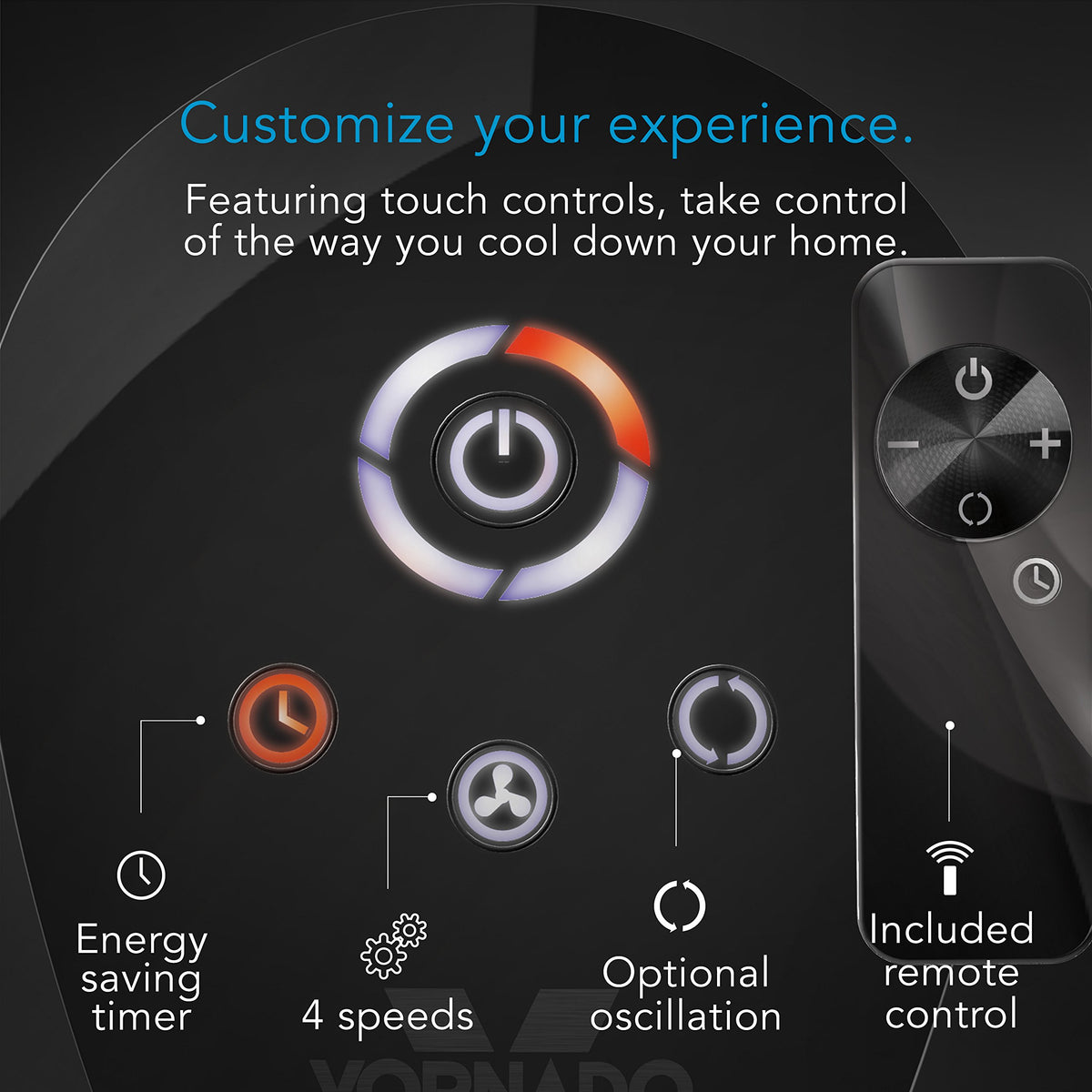Vornado Oscr37 Oscillating Tower Fan And Air Circulator With Remote, Smooth Oscillation, Timer And Touch Controls, 37 Inch,Black
