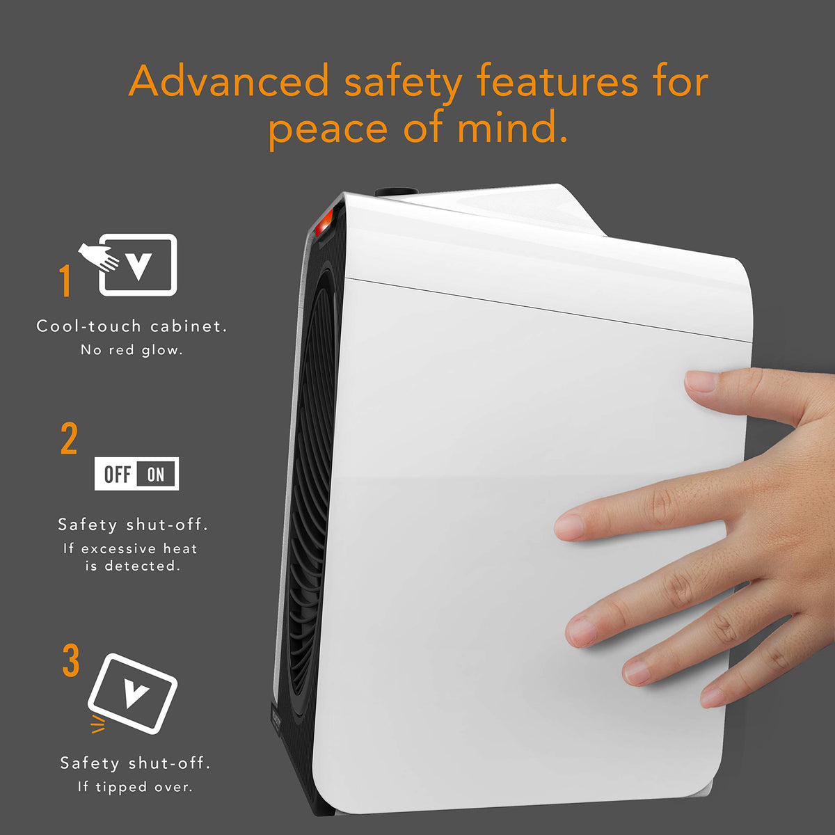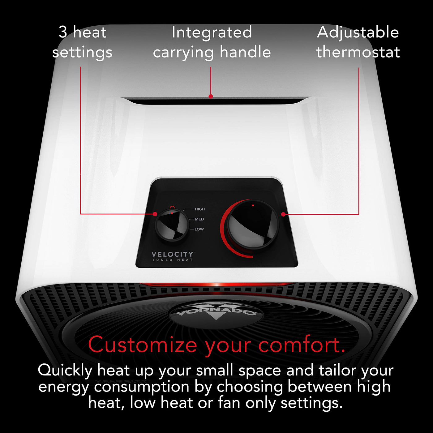 Vornado Velocity 3 Space Heater With 3 Heat Settings, Adjustable Thermostat, And Advanced Safety Features, White, Small