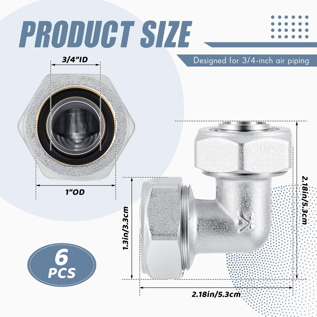 Yaocom 6 Pcs 3/4 Elbow Air Piping Fittings,Brass-Nickel Plated,200Psi,Tubing Fittings For Shop Compressed Air Line System Kit