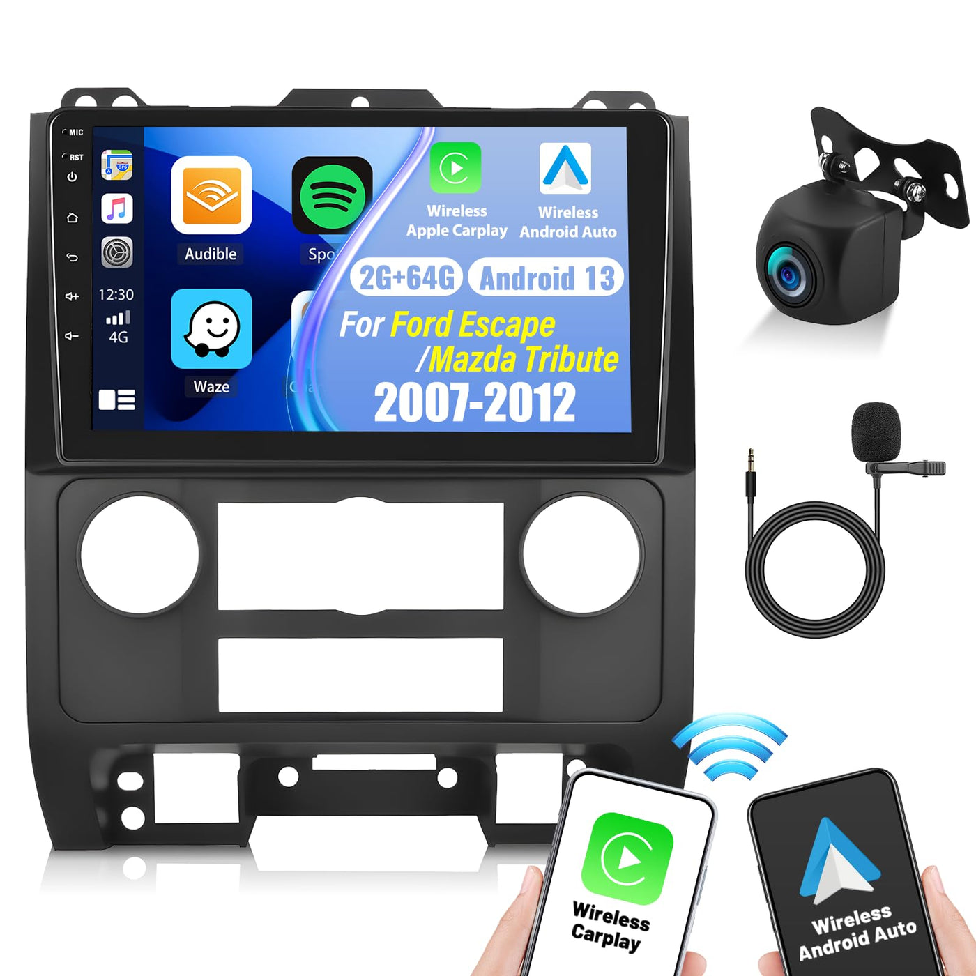 2+64G Android 13 Car Stereo For Ford Escape 2007 2012/Mazda Tribute 2007 2012 With Wireless Apple Carplay Android Auto,9''Touchs