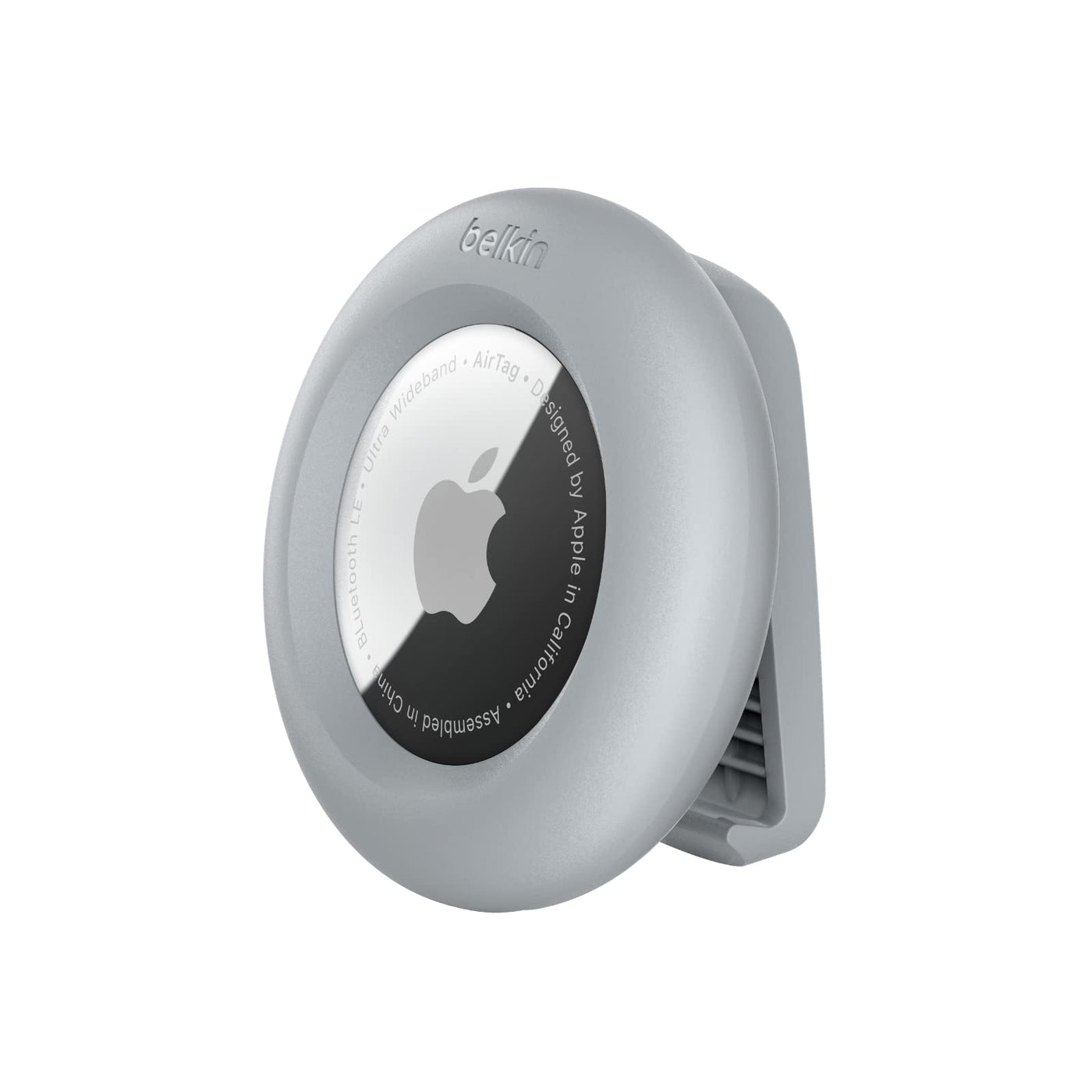 Belkin Apple AirTag Secure Holder with Clip AirTag Holder Durable Scratch Resistant AirTag Case Apple Air Tag Case with Spring Loaded Clip Attach to Backpack, Clothing, & Luggage Light Gray