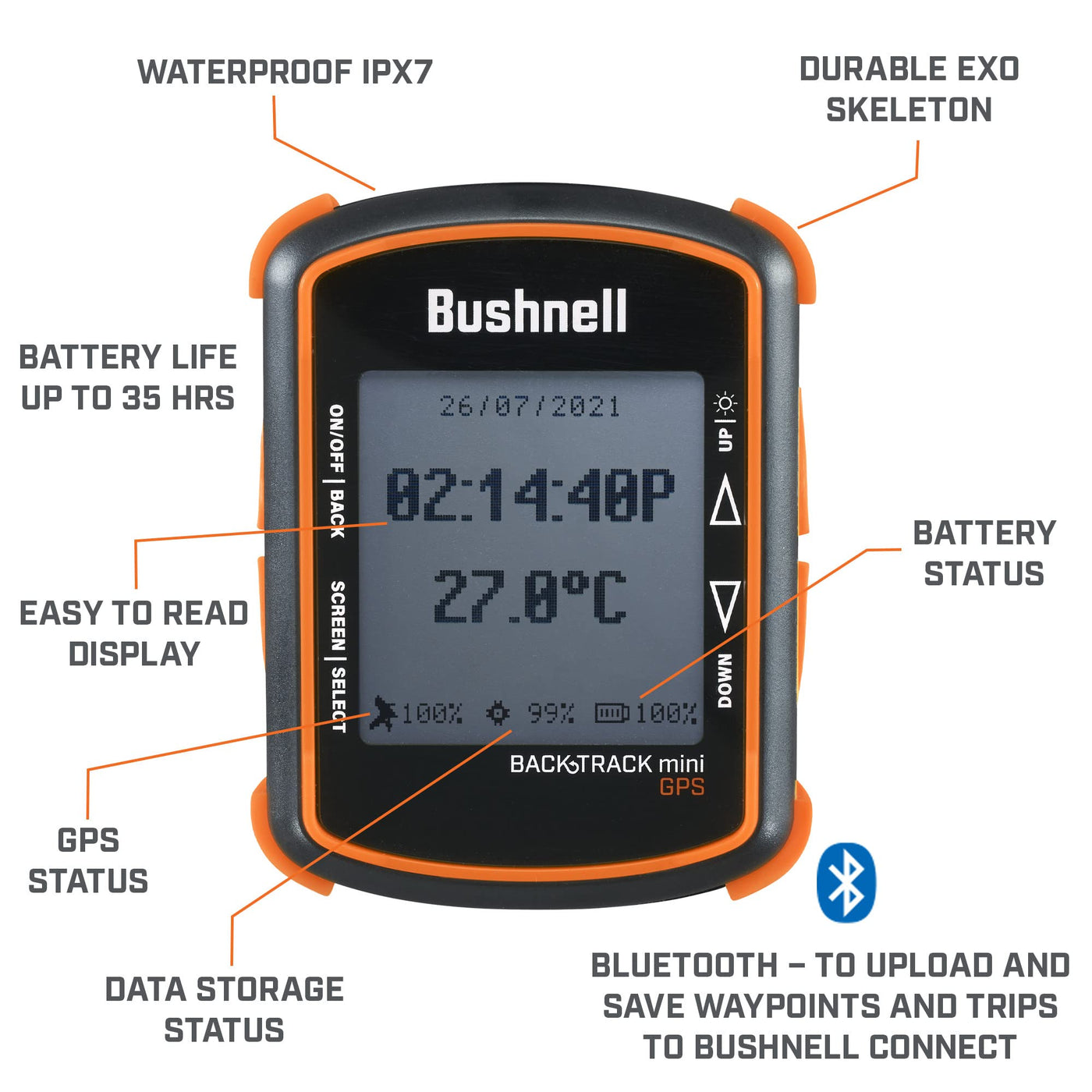 Don'T Have Cell Coverage Or Battery Dies On Your Smartphone When You Are Out Hiking, Backpacking, Or Hunting? The Bushnell Backtrack Mini Gps Will Help You Get Back To Your Basecamp Or Trailhead. Uses Gps Technology To Capture Your Trip Or Waypoint So You Can Guide Back To Your Starting Position. Battery Lasts Up To 35 Hours. Rugged And Waterproof To Handle Anything You Put The Bushnell Backtrack Mini Gps Through. Want To Store Or Share Your Trip Or Waypoints? The Bushnell Backtrack Mini Gps Has Bluetooth To View And Sync Trips And Waypoints To The Bushnell Connect App On Your Smartphone.