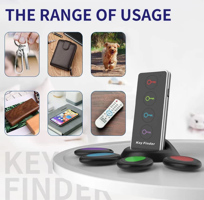 Key Finder Locator With Sound,Megtaight,80Db+ Rf Item Locator Tags With 130Ft Working Range, 1 Rf Transmitter & 4 Receivers,Wireless Remote Finder For Finding Key Phone Glasses Wallet Pet Tracker...