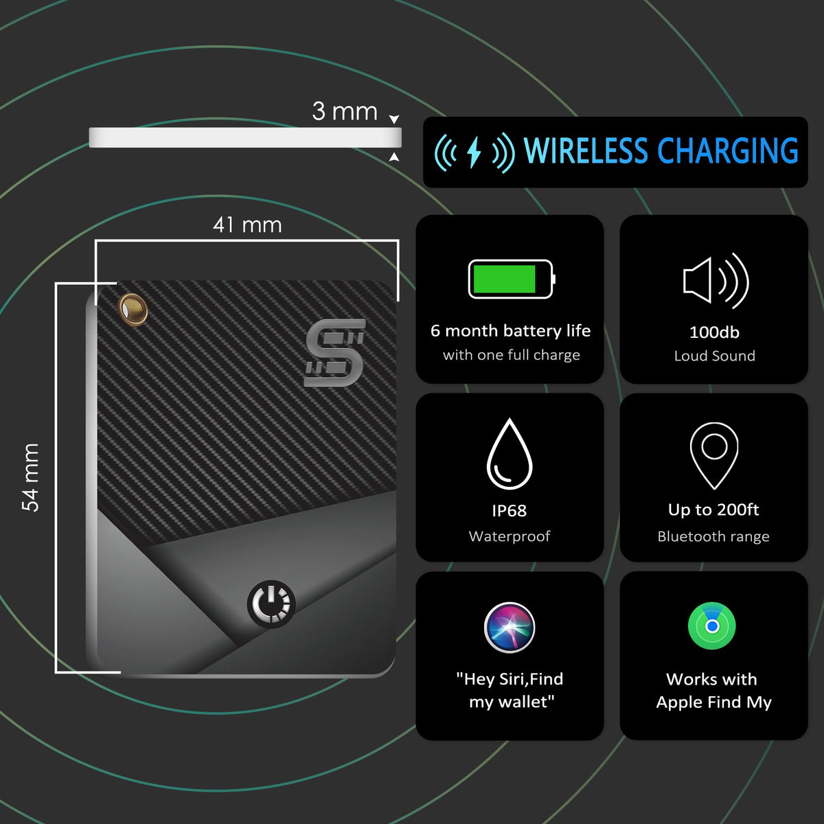 Keys Finder Tracker Qi Wireless Charging Ip68 Thin Item Wallet Purse Luggage Located Works With Apple Find My App & Network (Ios