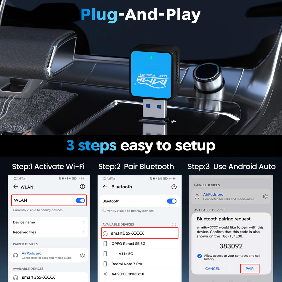 Mmb Mini Android Auto Wireless Adapter, 2024 Newest Android Auto Dongle For Android Phone, Smallest,Plug & Play Converts Wired T