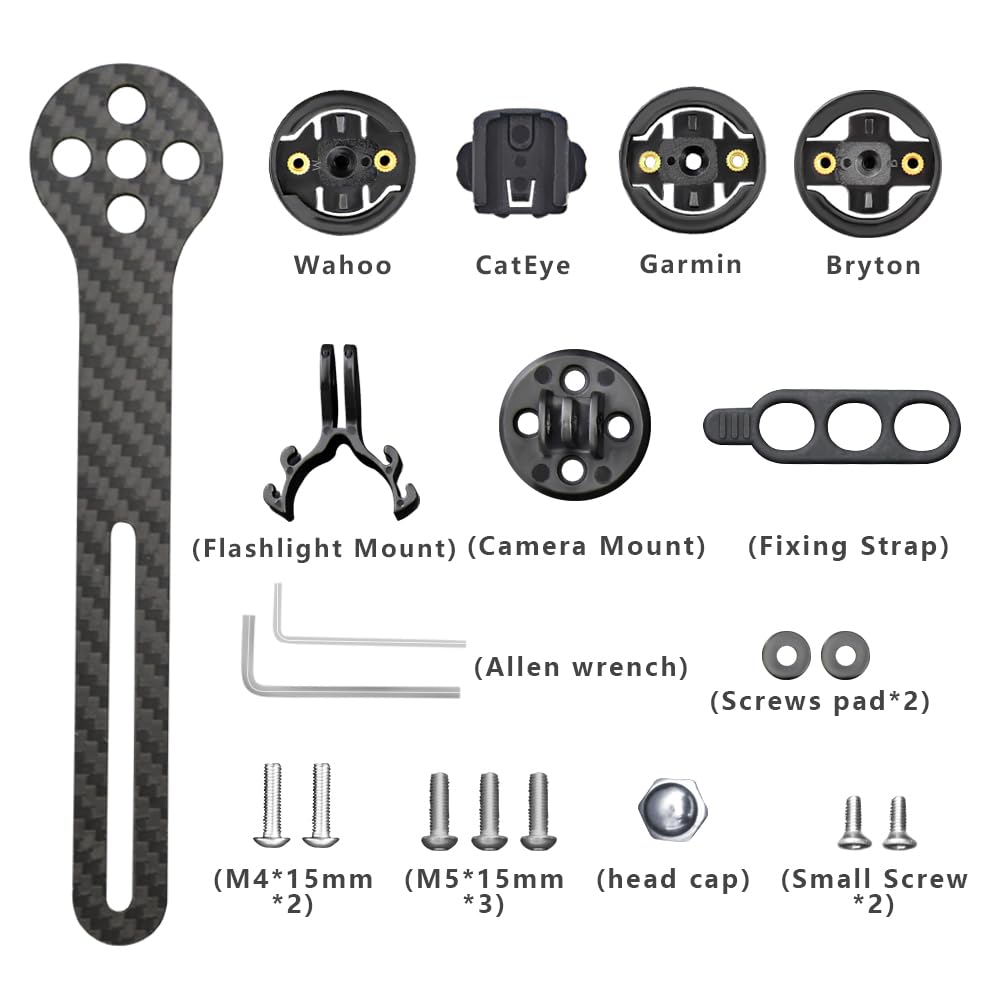 Brand: Rxl Sl Material: Carbon Fiber + Plastic Size:160*35Mm Color: Black Apearance: 3K Matte Application: Fit For Wahoo, Giant, Garmin, Bryton Bike Computer. Feature: Multifunctional Bike Computer Mount, Not Only Compatible With Speedometers, But Also Cameras And Flashlights. Package Include: 1Pc Bicycle Speedometer(Not Include The Handlebar)