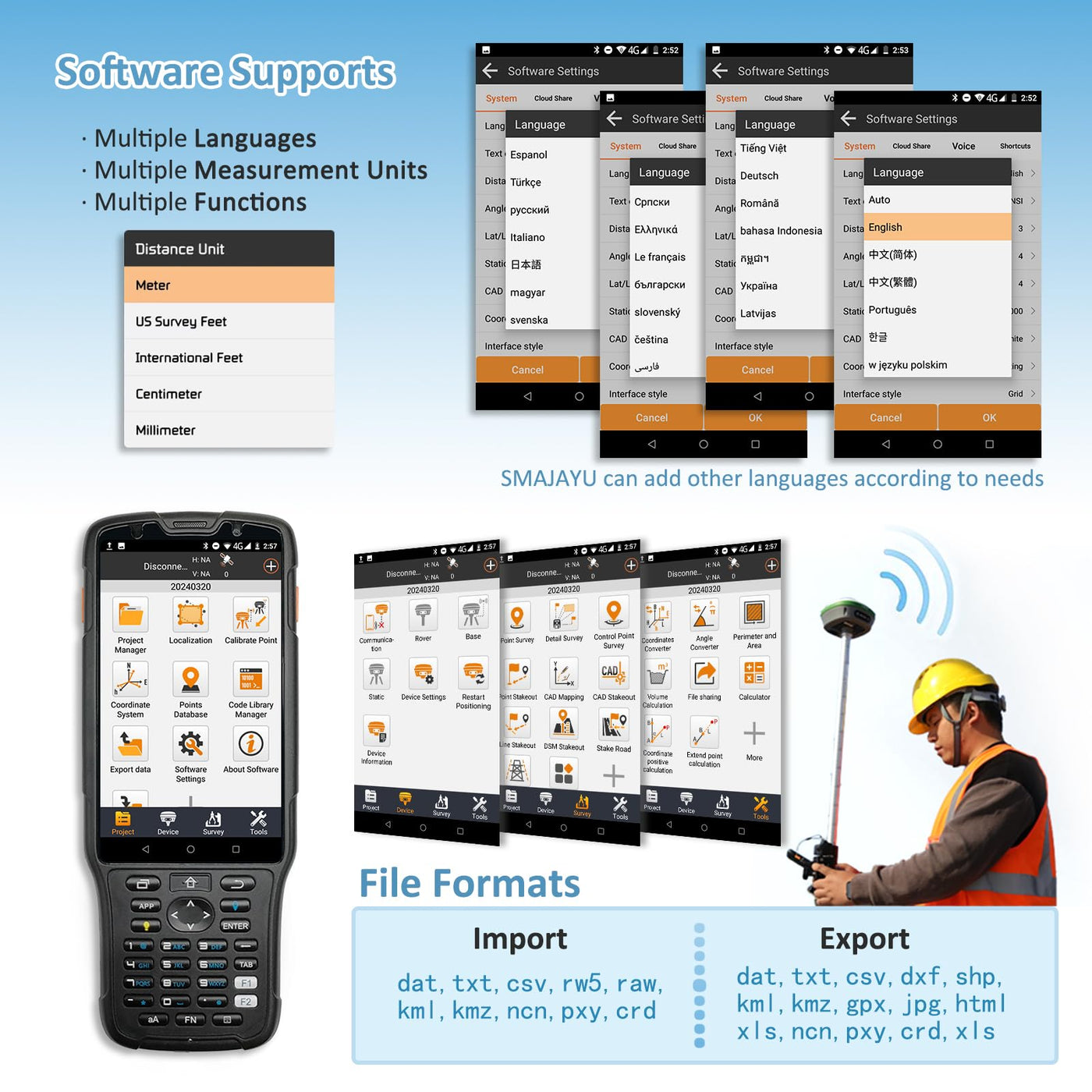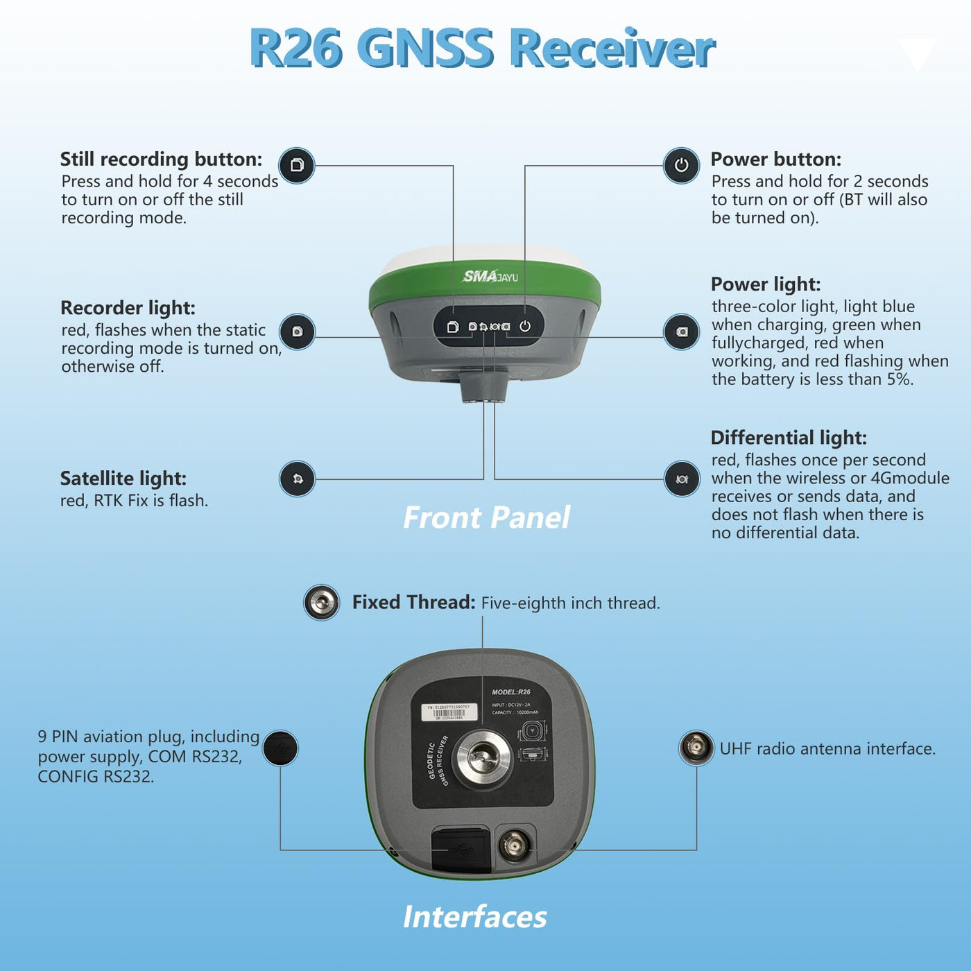 Smajayu R26 V2 Gnss Imu Rtk Gps Surveying Equipment Rover Base Handheld Collector And Survey Software, Noaa Certificated, 1408 C