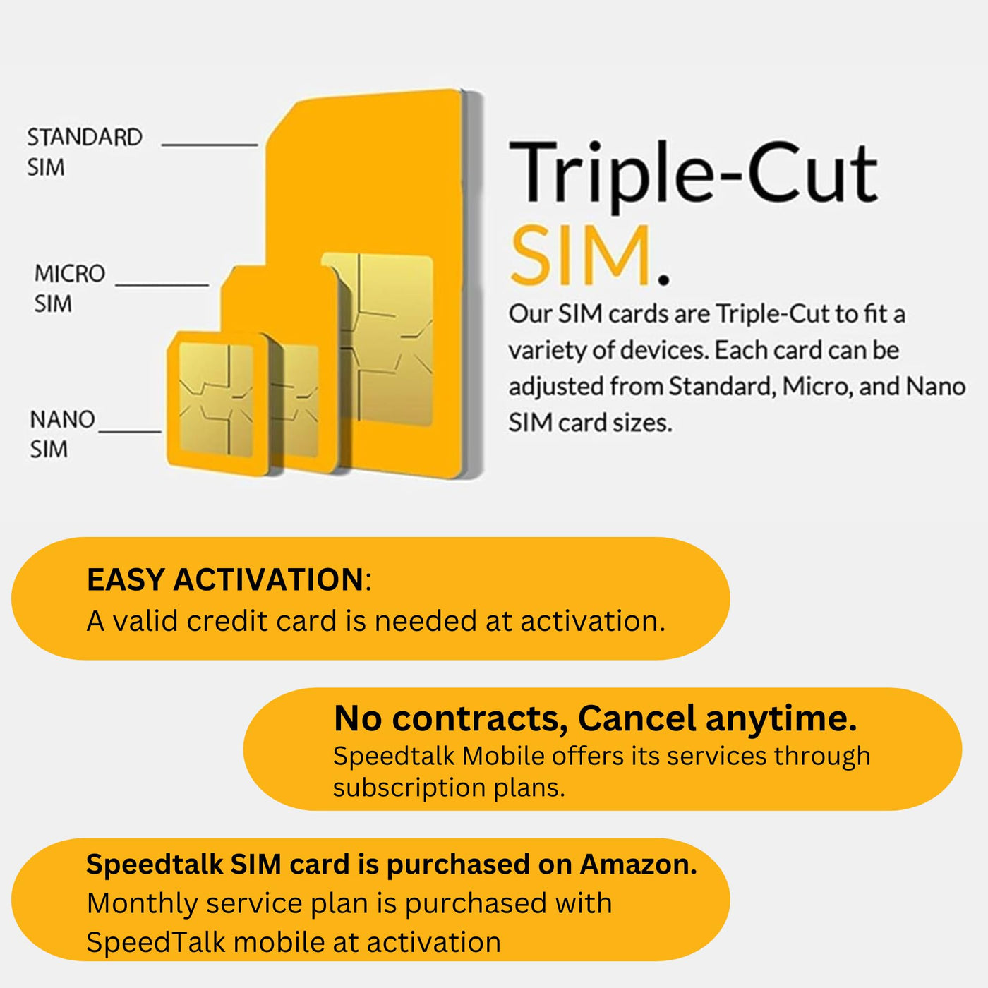 Majority Of Gsm Gps Tracker Today Uses Cellular Technology To Remotely Communicate With These Devices. You Will Need A Sim Card To Enable Tracking Services To Work And Communicate With The Tracker Remotely Via The Phone Number Associated With The Sim Card. Some Use Text Messaging To Locate The Tracker, Other Devices Use Data Connection. Either Way, Our Service Offer Voice Call, Text And Nationwide 4G 5G Lte Data. Our Service Will Work Within The United States Including Canada & Mexico Roaming. Check Coverage At Stkmap To Activate Please Visit Us At Activatespeedtalk. After Sim Activation, It May Take Up To 24 Hrs For The Gprs And Data Settings To Sync And Update With Your Device. Make Sure To Turn On Your Device In An Area With Strong Reception. Our Sim Cards Can Be Used With Any Gsm Tracking Device Such As But Not Limited To: Gps Trackers Kid Gps Trackers Pet Trackerstrackers For Seniors Car Alarm Systems Smart Watches Buyer Needs To Contact The Manufacturer Or Seller Of Their (Defective/Not Working) 3Rd Party Device. Speedtalk Mobile Offers Its Services Through Subscription Plans Which Auto-Renew Every 30 Days. Plan Begins As Soon As You Activate Your Sim Card. Plans Will Auto-Renew At The Rate Stated At The Time Of Purchase, Every Month, Until You Cancel. Easy Cancellations Can Be Made Any Time Through Our Website Or By Contacting Customer Support. A Valid Credit Card Is Required At The Time Of Activation.