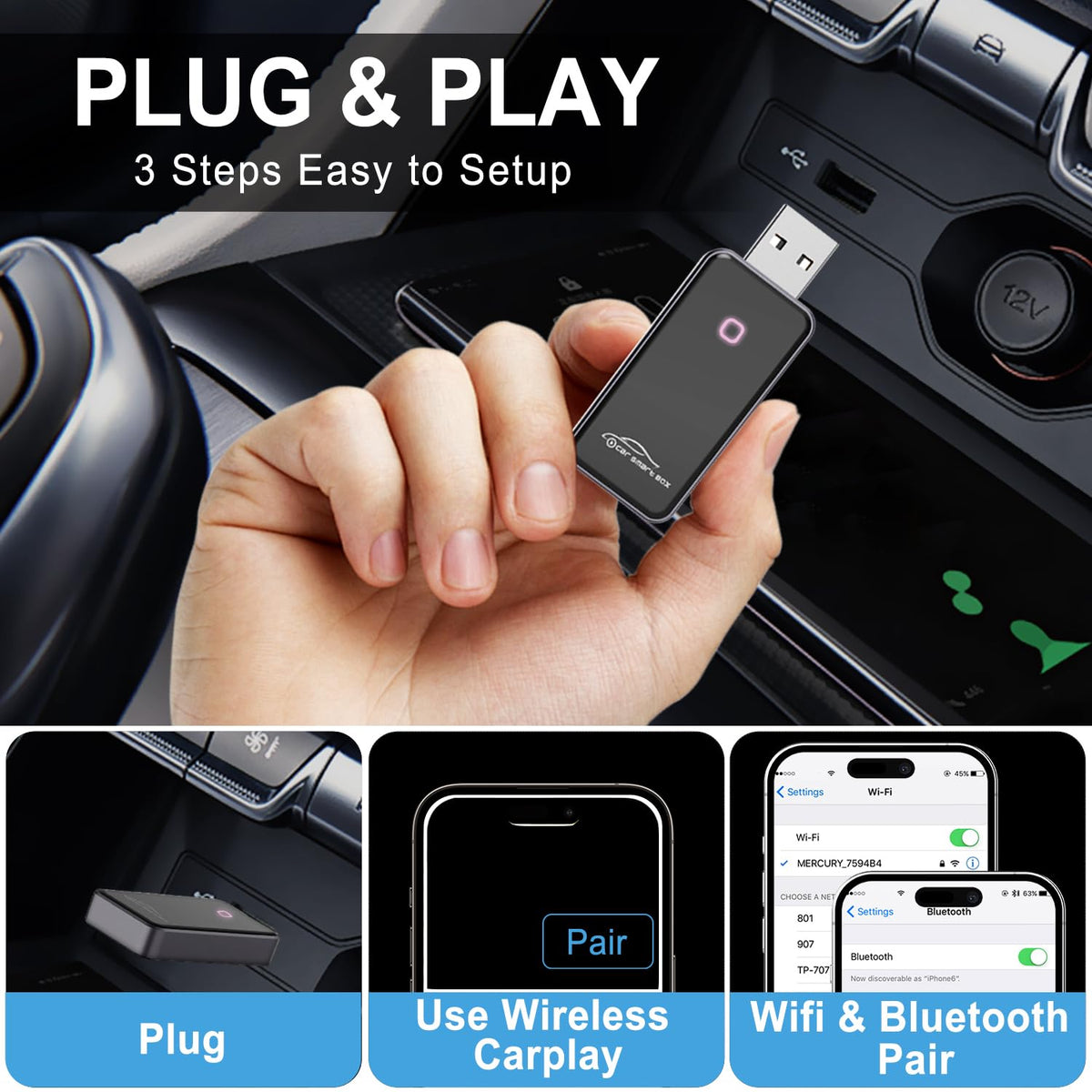 Unbktom Wireless Carplay Adapter Converts Wired To Wireless Carplay Dongle For Wireless Control Plug & Play Carplay Fit For Ipho