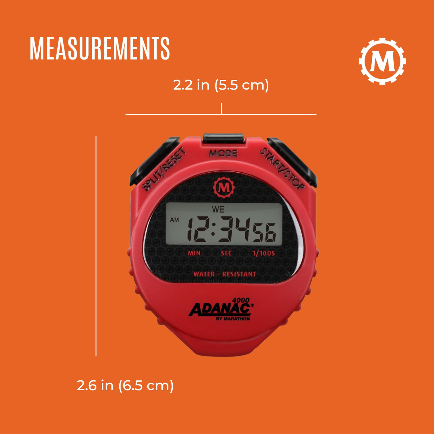 Marathon Adanac 4000 Digital Stopwatch Timer, Red High Precision Accuracy To 1/100Th Seconds Water, Dust & Shock Resistant 46� Lanyard Included