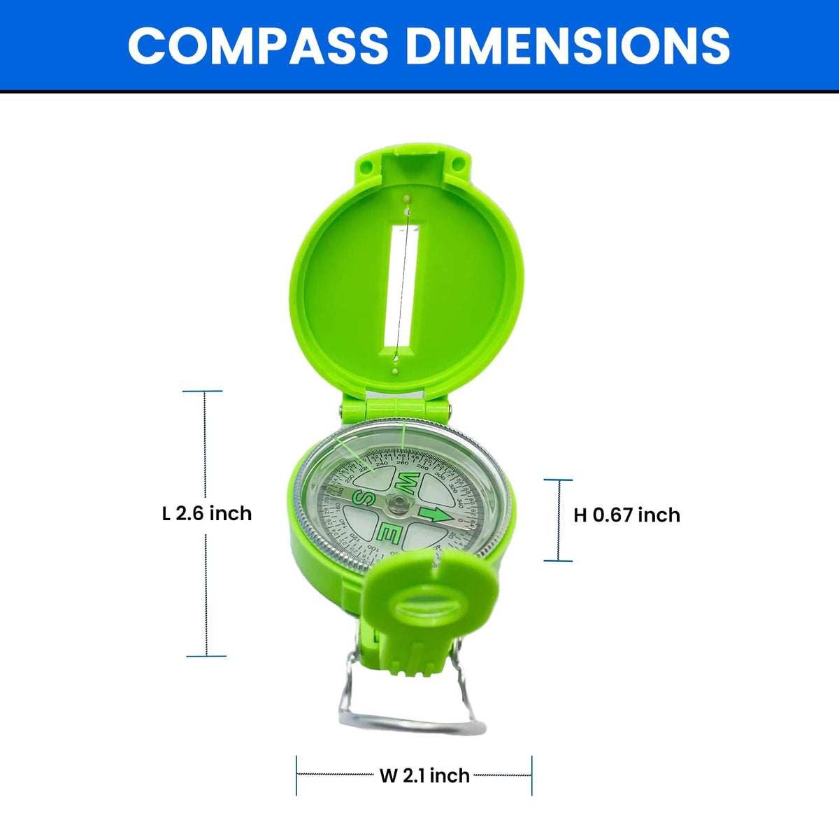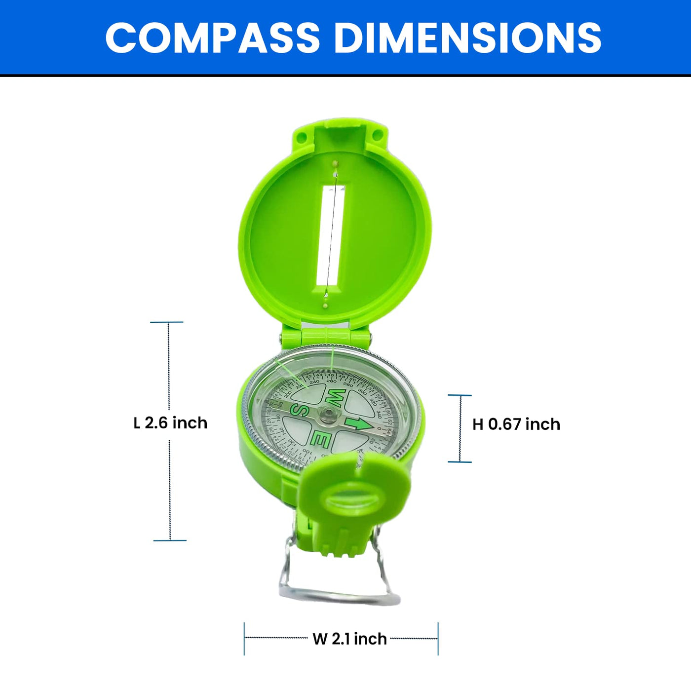 Multi-Function Lensatic Compass: Provides A Range Of Functions, Including Sighting Wire Under The Cover, Rear Sight Groove For Azimuth Headings Reading And Luminous Sighting Dots For Aligning The Sighting Cover In Low Light. Liquid Filled Compass, Stable, Accurate And Locate Quickly Pointer