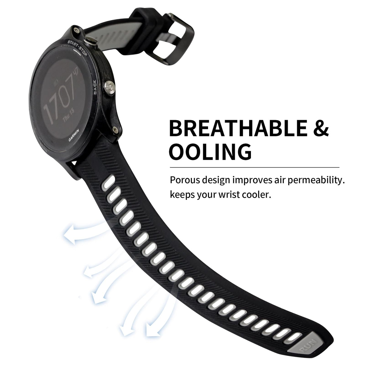 ?Compatible Witch Forerunner 945 Watch Band?: Soft Silicone Adjustable Sports Band Compatible For Garmin Forerunner 945/935, Garmin Fenix 5/Fenix 5 Plus Smartwatch. | ?Adjustable Garmin 945 Watch Band Length?The Garmin 945/935 Watch Band Size Fits Wrists 5.5'-8.7', Suitable For Most People. Comes With 4 Garmin 945 Watch Tools, You Can Easily Install The Strap On The Smart Watch, The Classic Buckle Can Easily Adjust The Size. And With The Stainless Steel Band Keeper, Firmly Fixed, Durable And Anti-Slip. | ?Skin-Friendly?For Garmin 945 Watch Bands Are Made From Flexible Silicone, Durable, Soft, Sweat Resistant & Water-Resistant. Garmin 935 Watch Band Replacements Are Very Easy To Install And Remove. | ?Multiple Colors Choice?There Bands For Garmin 945 Forerunner Are Various Colors In This Breathable Silicone Garmin 935 Watch Band To Personalize Your Garmin 945 Watch Band, You Can Choose One According To Your Moods, Dresses, And Occasions. | ?Breathable? The Holes For Garmin Forerunner 945 Watch Bands Are More Comfortable To Wear And Make Your Skin Breathe Freely. Ventilation Holes Design Makes Garmin 935 Watch Band Replacement Wear Cool And Dry After You Sweat During Sports.