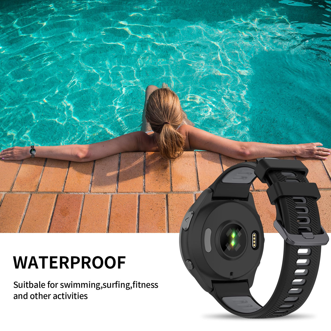 Q: What materials are used in the Baaletc Garmin watch band?A: The Baaletc watch band is made from soft and flexible silicone, which is durable, sweat-resistant, and water-resistant, ensuring comfort during sports activities.