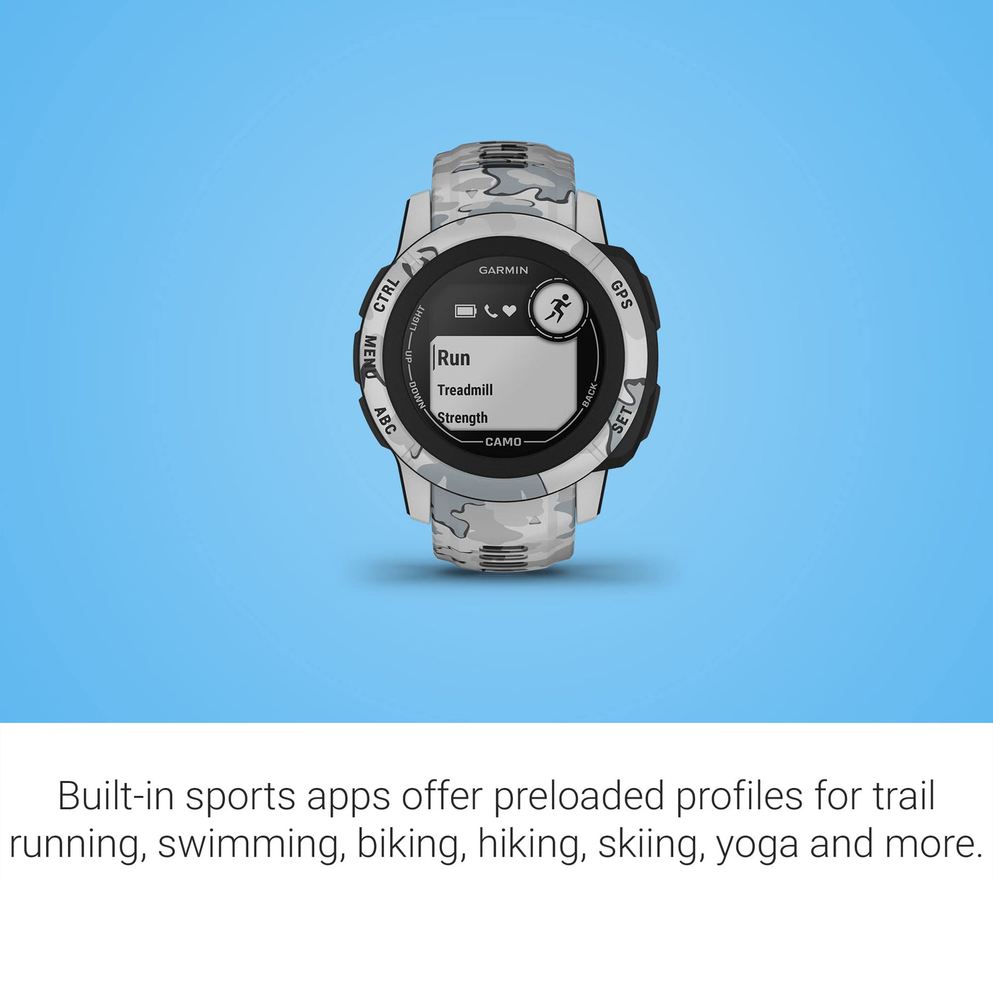 Whatever You Do, Own It With Instinct 2S - Camo Edition. This Rugged Gps Smartwatch Features A Distinctive Camouflage Design And A Smaller Size To Fit Your Style And Your Wrist. The Distinctive Camo Design Stands Out In A Crowd And Blends In With Your Surroundings. Do More Of What You Love With Preloaded Activity Profiles For Running, Biking, Swimming And More. When Paired With A Compatible Device, Live The Ultimate Connected Life With Smart Notifications And Connect Iq Compatibility. Understand Your Body Better With All-Day Health Monitoring For Energy Levels, Stress, Sleep, Pulse Ox And Much More (Pulse Ox Not Available In All Countries. This Device Is Intended To Give An Estimation Of Your Activity And Metrics; It Is Not A Medical Device).