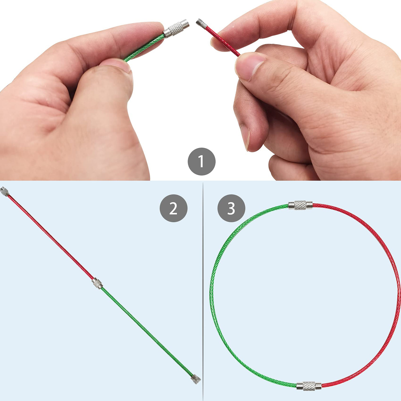 Q: What materials are used in the Ldcx Item Key Finder Keychains?A: The Ldcx Item Key Finder Keychains are made of high-quality stainless steel wire for the cable type, which is durable and rustproof. The round and flat circular keychain types are made of polished iron material, offering strength and resistance to erosion.