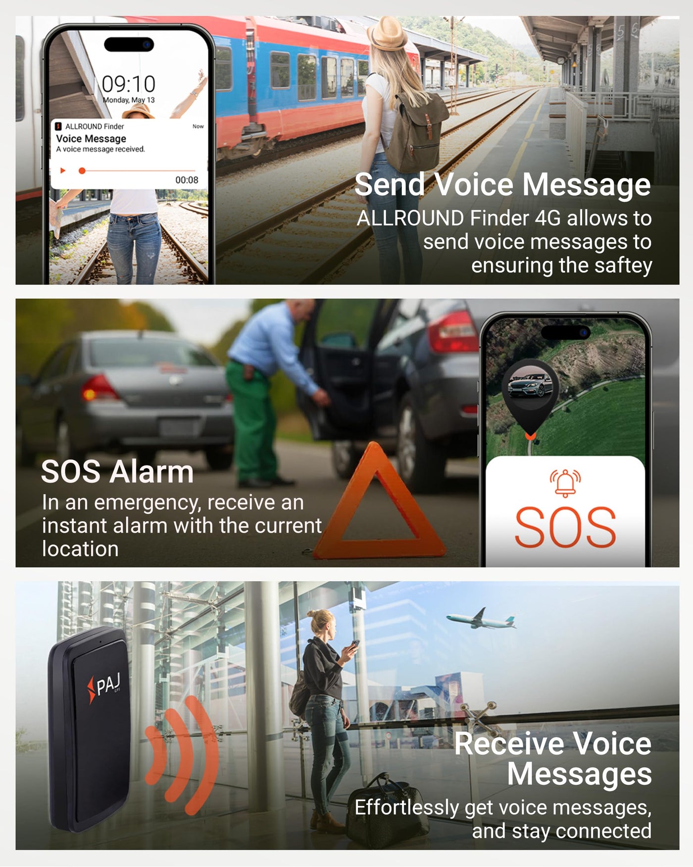 Paj Gps Tracker Allround Finder 4G Real Time Gps Tracking For Cars, Motorcycles, Kids & Seniors Sos Button, Voice Messages