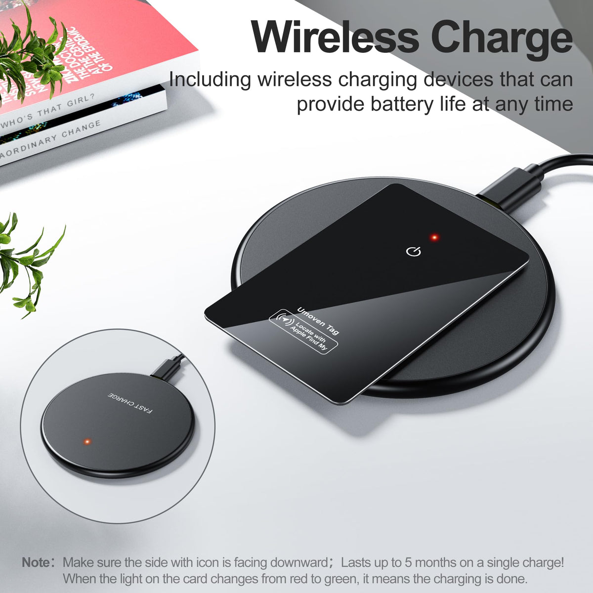 Q: How long does the battery of the wallet tracker last?A: When fully charged, the UMOVEN Wallet Tracker can provide up to 5 months of continuous use. It also supports wireless charging, and a charging device is included for your convenience.