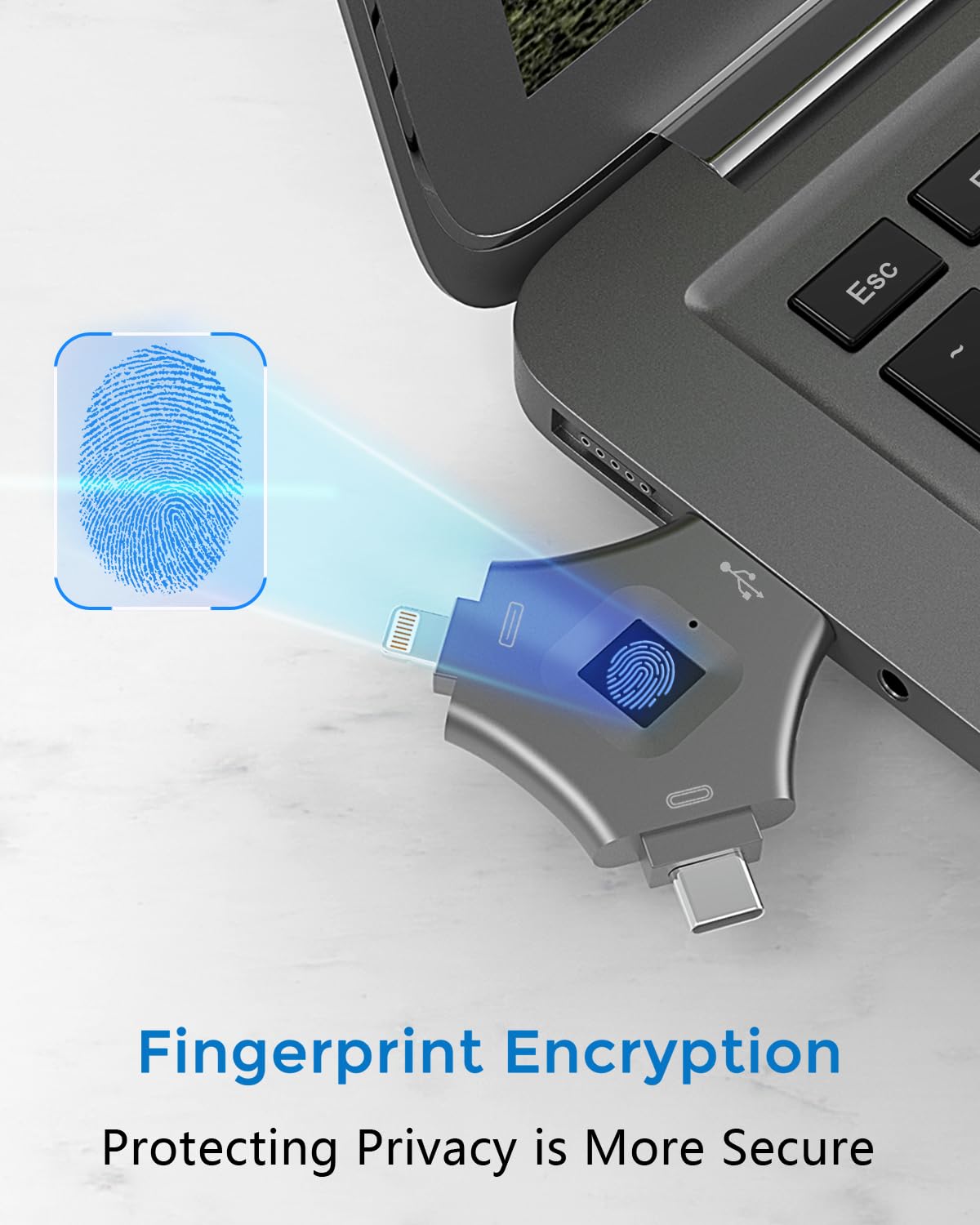 256Gb, Fingerprint Unlocked Usb Flash Drive, Secure Password Protected Usb Disk,Suitable For Iphone 3 In 1 Encrypted Drive,Encry