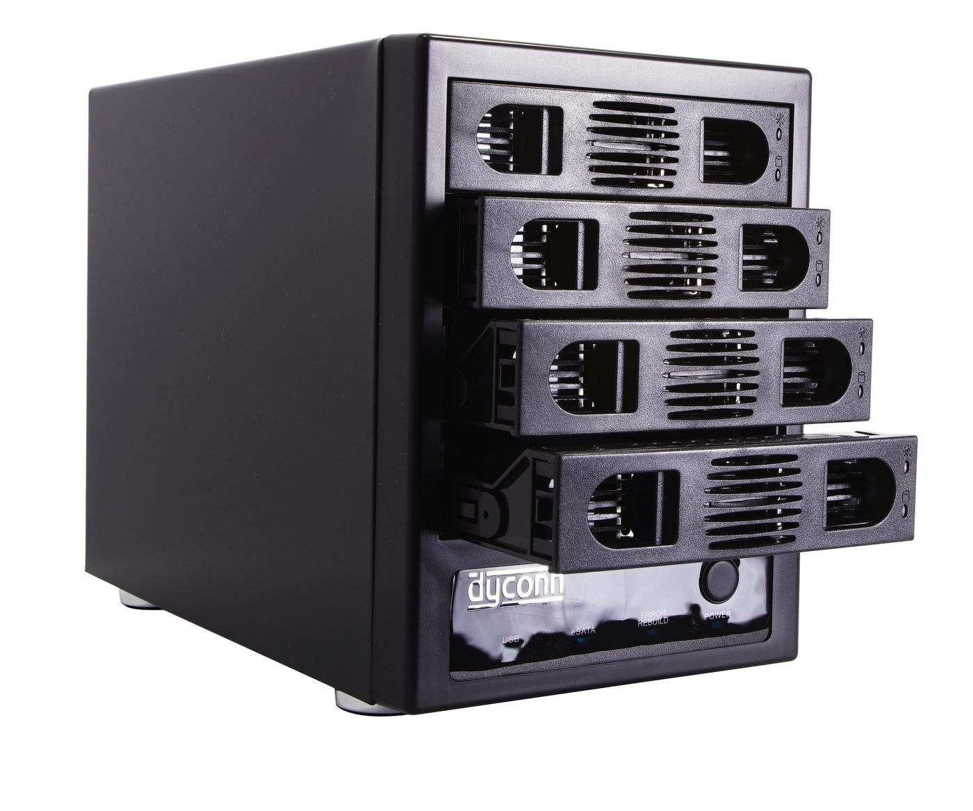Dyconn Raid Vault 4 2.5/ 3.5 HDD 4 bay RAID Enclosure read 4 HDDs at the same time. It supports RAID (RAID 0, RAID 1, RAID 3, RAID 5, RAID 10, Combine/Big) and provides the fast data transfer rate of USB 3.0 (up to 5Gbps).