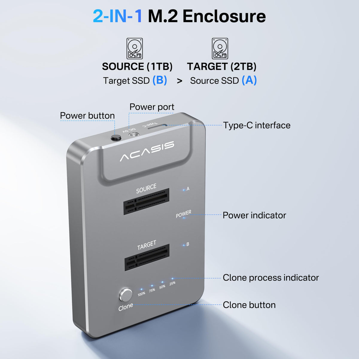 Acasis Nvme M.2 Duplicator Dual-Bay Offline Clone Usb C To Nvme Docking Station For M2 Ssd M Key Hard Drives Enclosure (M03)