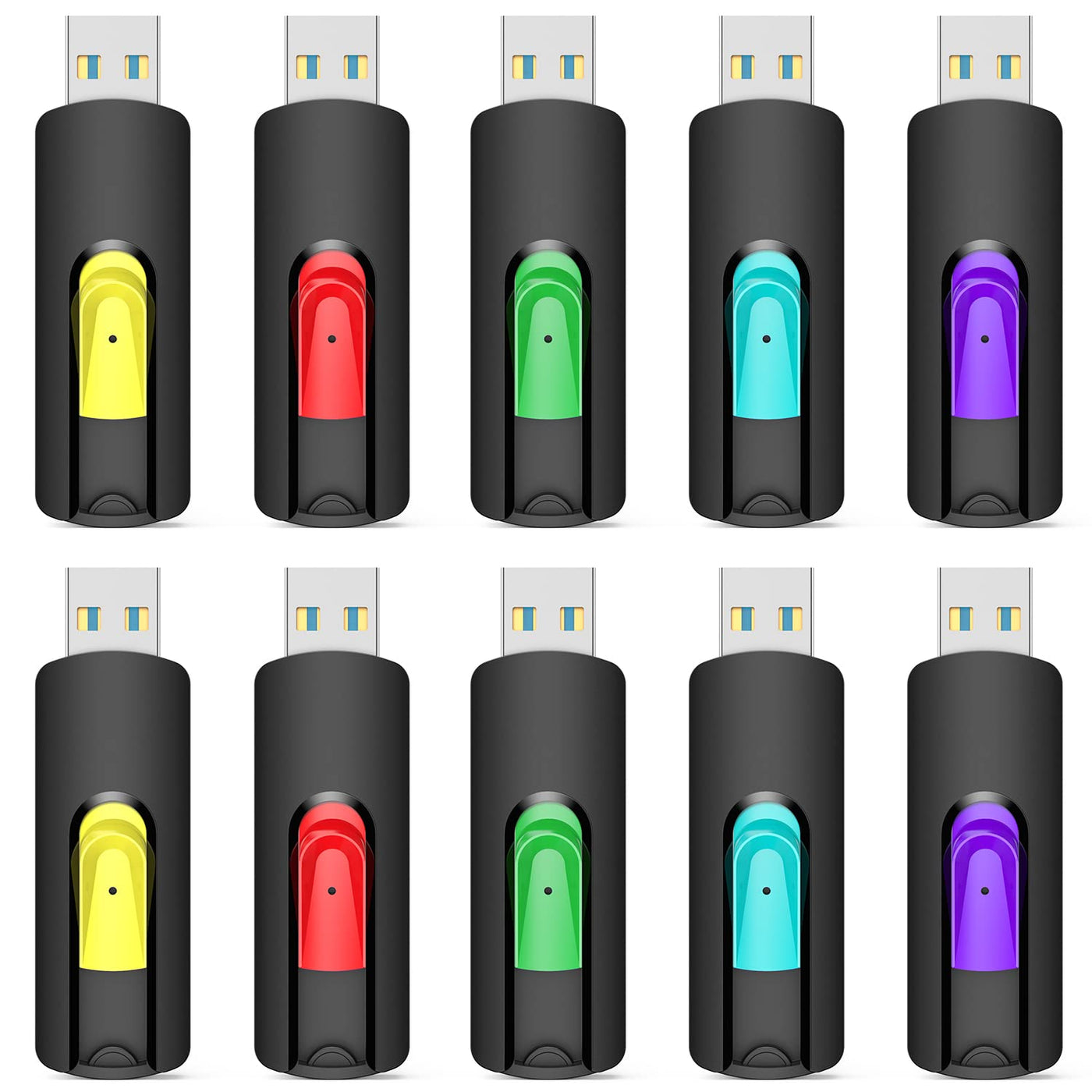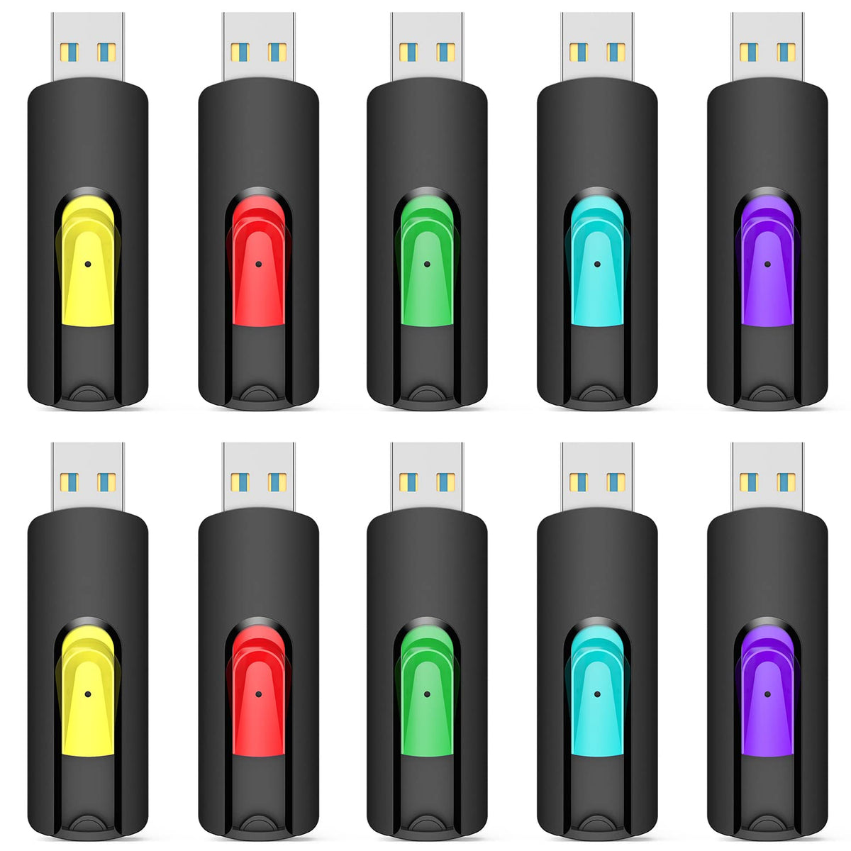 Aiibe 64Gb Usb Flash Drive 10 Pack Flash Drive Thumb Drives Bulk Jump Drive Zip Drive Pen Drive 64Gb Usb Drive - &Nbsp;(64Gb, 5 Mixed Colors: Red Green Cyan Yellow Purple)&Nbsp;