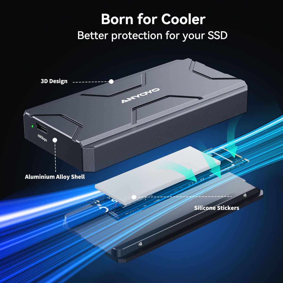 Anyoyo 40Gbps M.2 Nvme Ssd Enclosure, Tool Free Installation, Aluminum Usb 4.0 M.2 Nvme Ssd Enclosure With Thunderbolt 4 Cable C