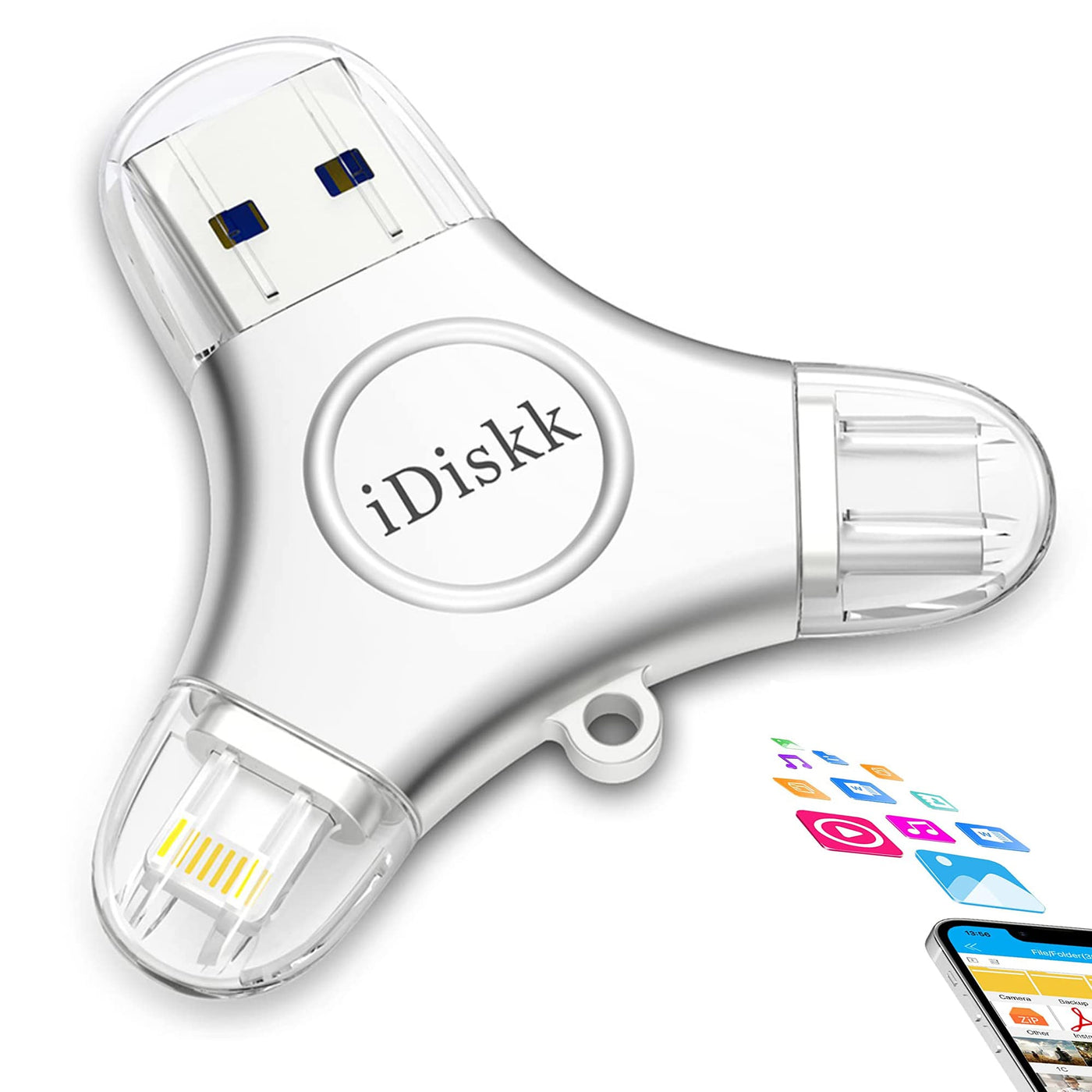 Idiskk Mfi Certified 128Gb Photo Stick For Iphone Usb C Ipad Pro Android Samsung Flash Drive For Iphone 13/12 Pro/12/12 Pro/12 Mini/11/11/Pro/Xr/X/Xs Max,Ipad Pro Photo Storage Stick For Pc,Mac,Imac