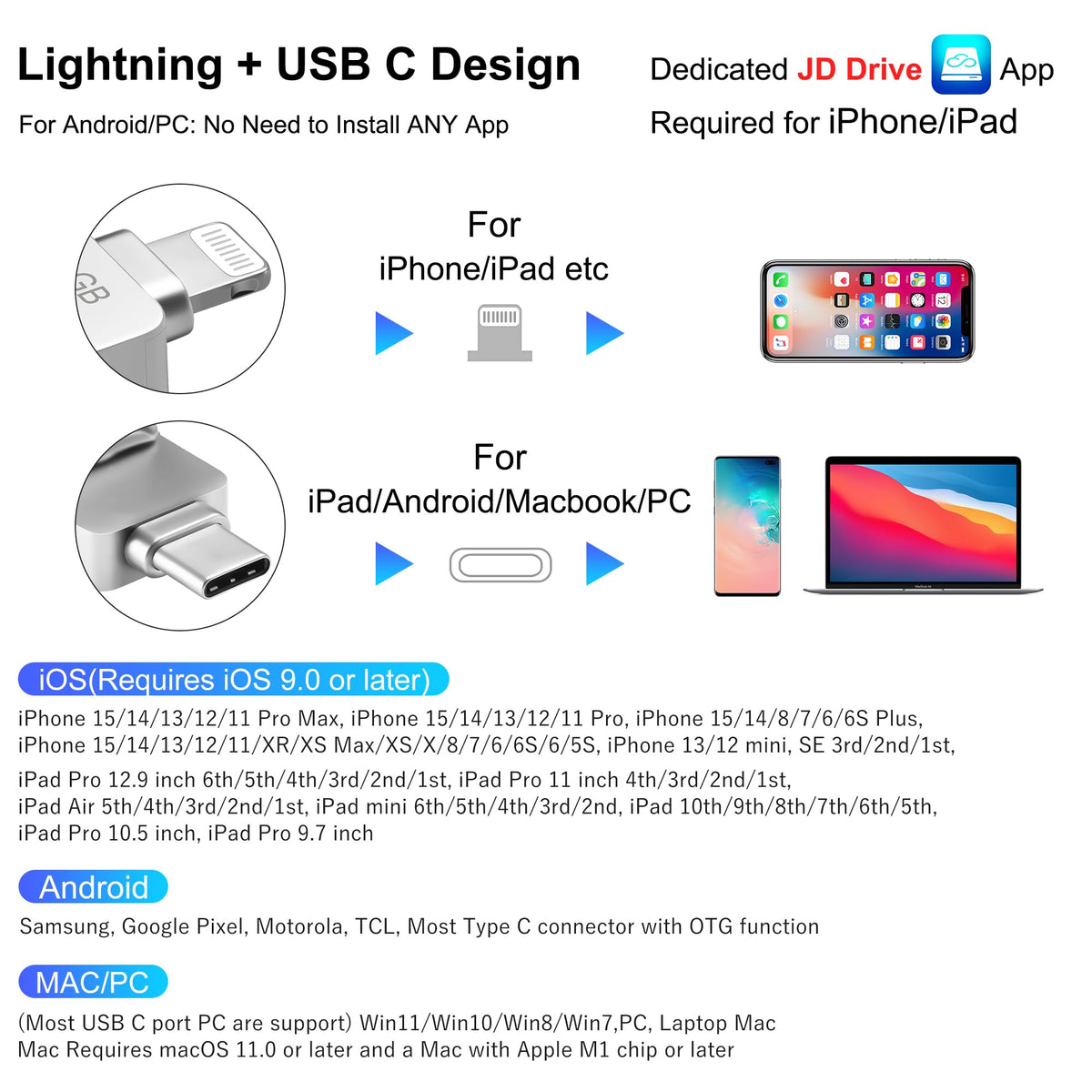 Apple Mfi Certified 512Gb Photo Stick For Iphone Memory Iphone Flash Drive Photo Stick Ipad Lightning Usb C Flash Drive Android