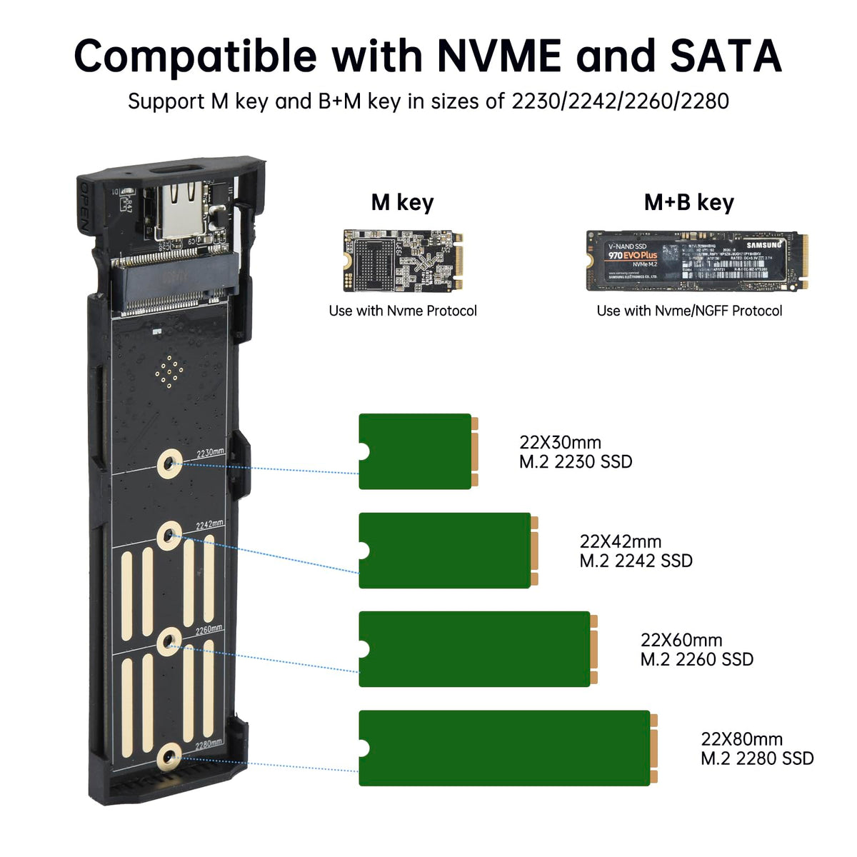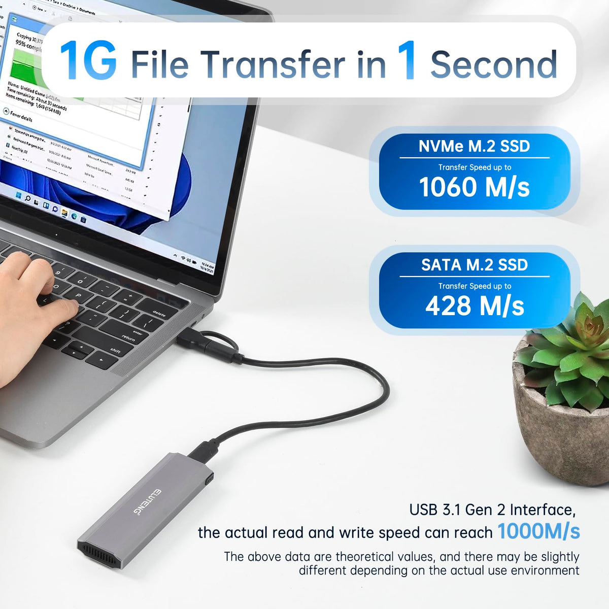 Eluteng M.2 Ssd Enclosure M.2 Nvme Sata Dual Protocol Hard Drive Enclosure Aluminum Usb 3.2 Gen 2 10Gbps External Nvme To Usb Ss