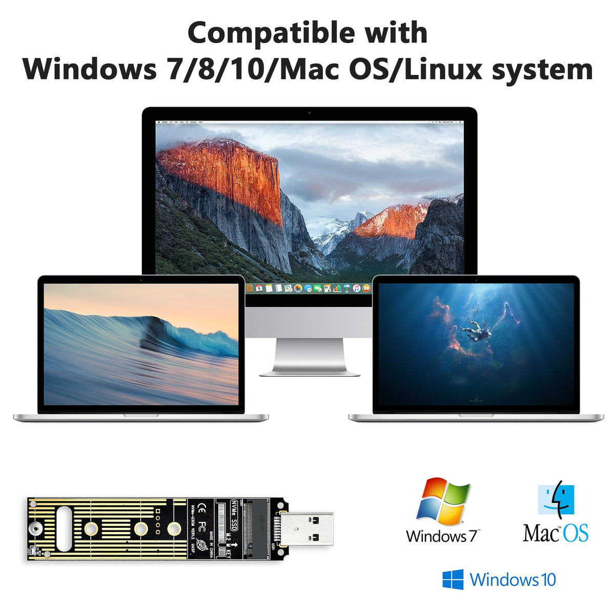 Eluteng Nvme To Usb Adapter Usb 3.1 Gen 2 To M.2 Nvme Ssd Converter Adapter 10Gbps Pcie Based M Key Hard Drive Reader Max 4Tb Su