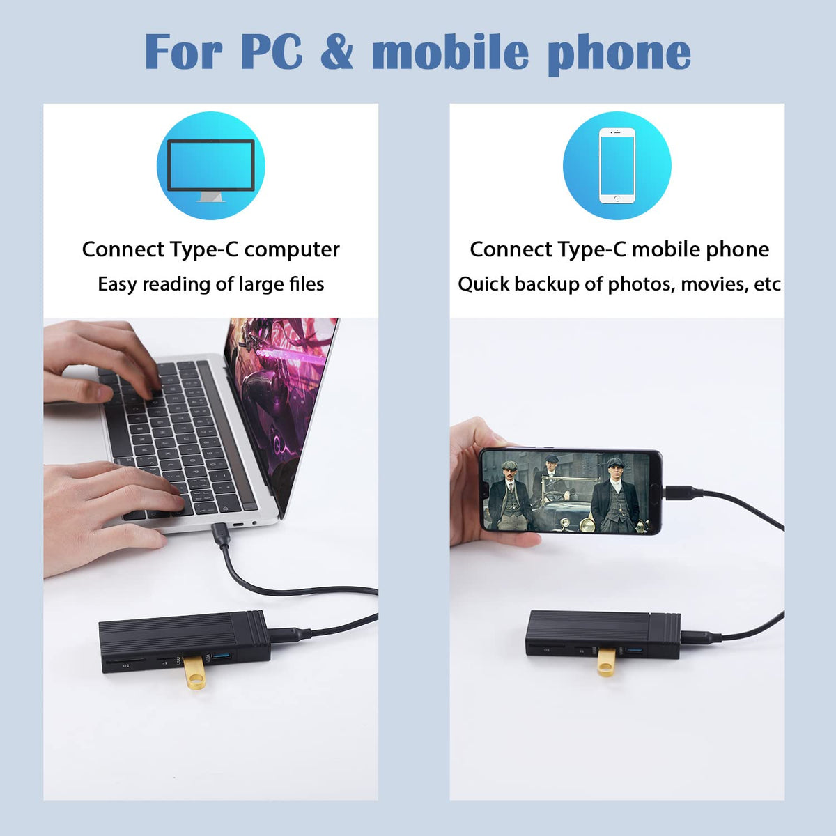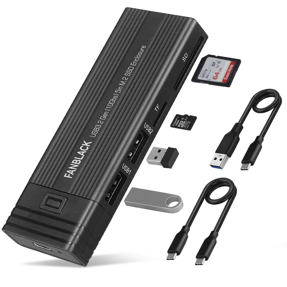 Fanblack 2 In 1 M.2 Nvme Ssd Enclosure Adapter Tool Free, Usb 3.2 Gen 2 10Gbps Hdd Adapter Mkey(B+M Key) Ssd Reader, With 2 Port