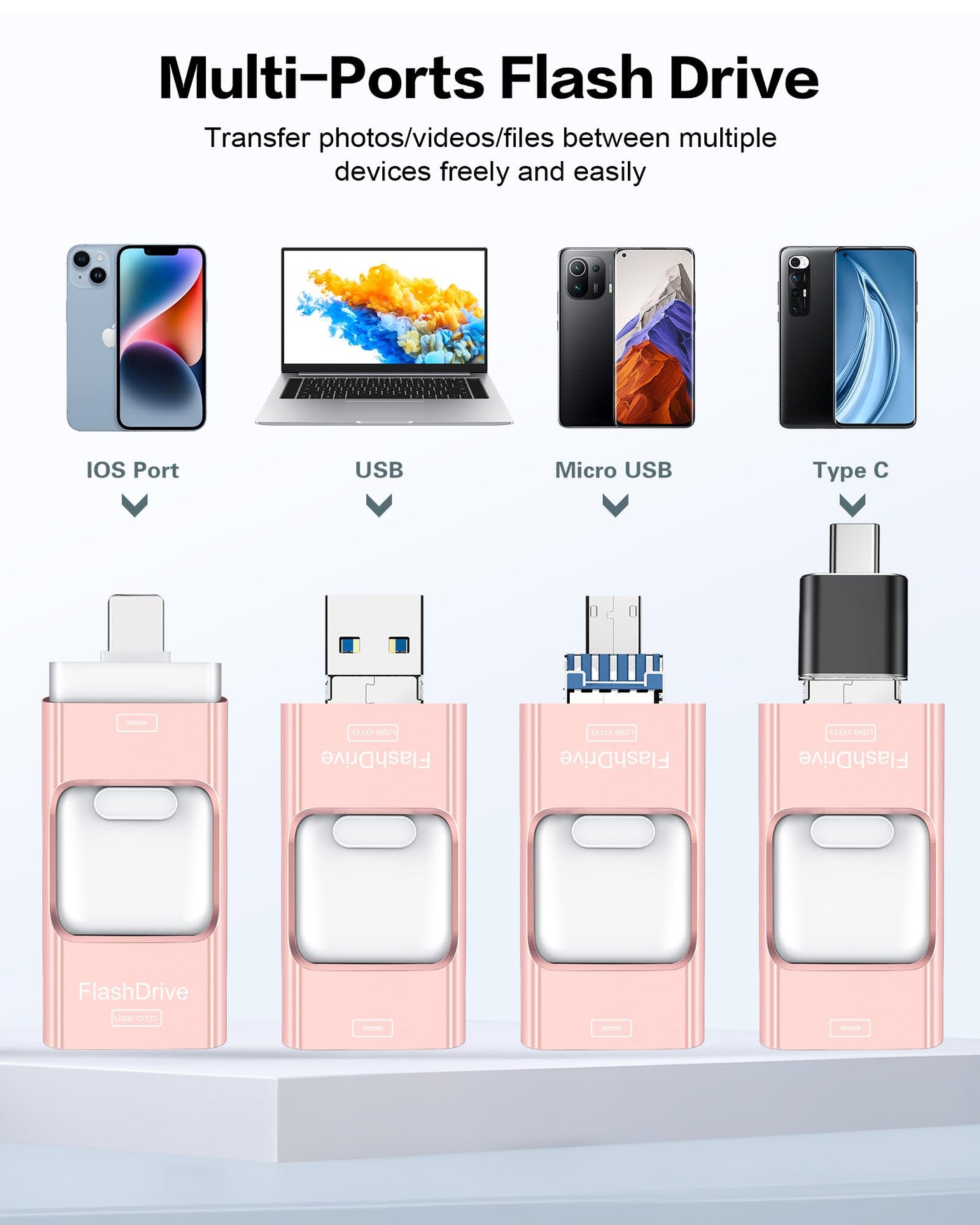 Flash Drive For Iphone 128Gb, Photo Stick Thumb Drive Usb Stick High Speed Transfer Usb Drives External Storage Memory Expansion