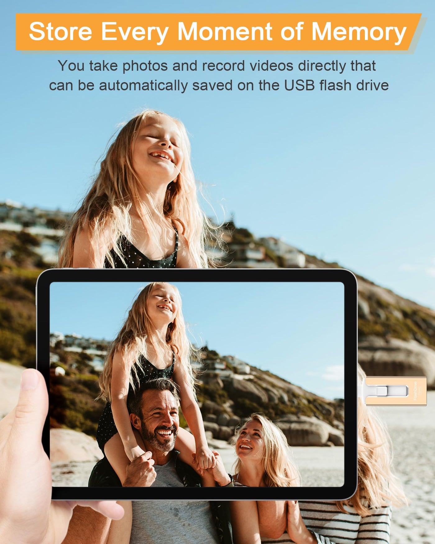GNASEET 256GB USB Flash Drive for Phone & Pad, High-Speed Photo Stick, Gold Memory Storage for Photos & Videos