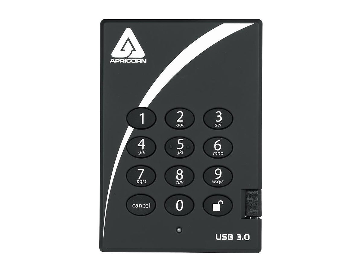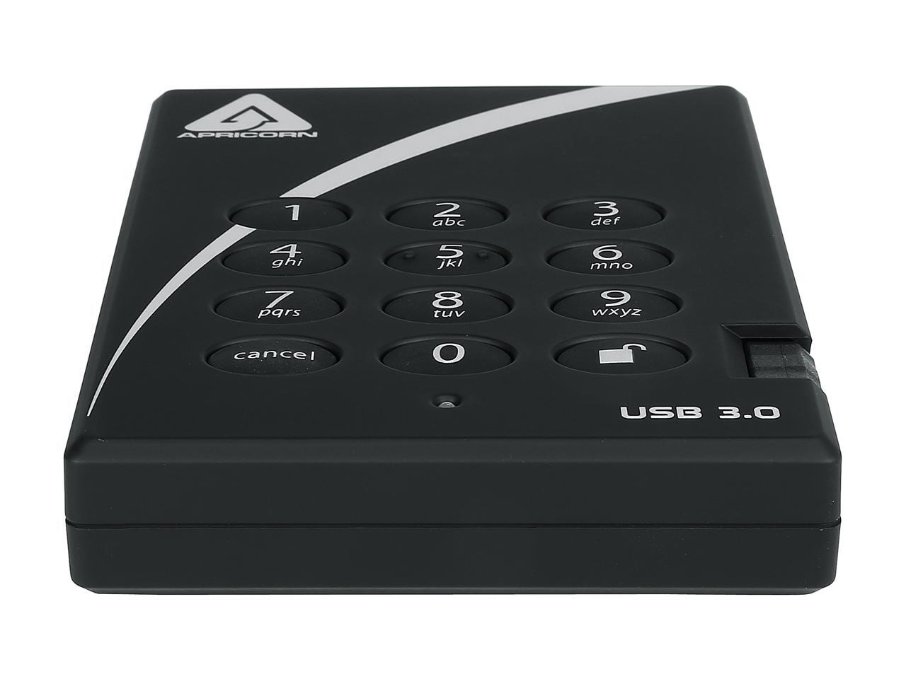 Apricorn 2Tb Aegis Padlock Portable Hard Drive Usb 30 Model A25-3Pl256-2000 Black