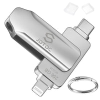 The Iphone Photo Storage Stick With Apple Mfi Certfication, The Lighinting Connector Chipset Are Provided By Apple Mfi That Always Ensure Apple Devices Compatibility. This Iphone Flash Drive Has 2 Connectors, One Lightning (For Iphone & Ipad) The Other Usb C (For Ipad Pro, Android Phones, Mac, Laptop With Usb C Port Etc), Seamlessly Transfer Files Among Different Devices. With This Iphone Memory Stick, You Can Transfer Files More Easily And Efficiently. ***The Latest Jd Drive App (1.0.28 Version) Support The Latest Devices And Latest Ios Ipados. This Iphone Photo Storage Stick Provides A Conveniet Way To Backup / Transfer Our Photos / Videos From The Ios Devices (Iphone And Ipad). This Iphone Memory Stick Flash Drive Has Stable And Fast Transfer Speed: Lightening Connector---Read 15Mb/S, Write 10Mb/S. Usb-C Connector---Read 80Mb/S, Write 40Mb/S. Lightning/Usb C Conncetor Protective Cap: The Ipad Photo Stick Both Sides Have Caps That Can Protect The Connector Perfectly.Requires Download Of Jd Drive App To Use On Iphone Ipad. Simply Plug Photo Stick Into Iphone,Super Easy To Backup The Whole Album Or Contacts With One Click,No Need For Cumbersome Selection Copy Paste.Great For Backup To Clear Space On Device.The Data Is Automatically Saved In Iphone Drive And Can Even Be Secured Your File With Password Via The App To Protect Your Individual Privacy.(Note: Once The File Is Encrypted,It Becomes Invisible On The Computer). No Need Internet Or Wi-Fi Any More.Using This Iphone Usb Drive,You Can Go On Vacation Or Something And Not Have To Worry About Running Out Of Space.You Can Play Movies And Music On This Iphone Flash Drive Photo Stick Without Taking Up Space On Iphone. The Only Setup That You Need To Do Is Install The ''Jd Drive'' App On Your Iphone And Plug In The Iphone Storage Device. Also You Can Save Photos/Videos Direct To The Photo Stick Via In-App Camera.