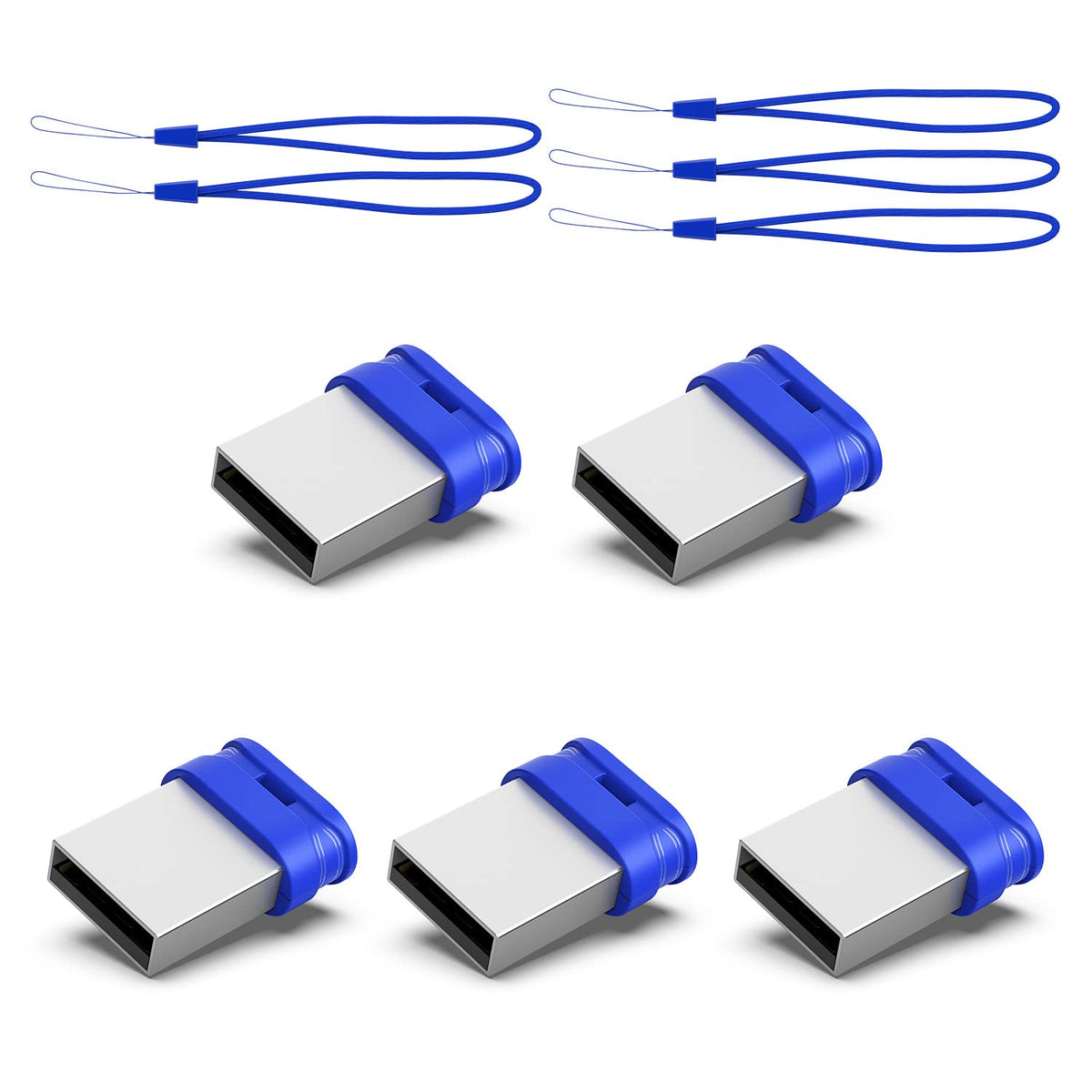 K&Zz 64Gb 5 Pack Usb Flash Drives With Lanyard 64G Small Usb Drive Ultra Fit Flash Drives Mini Thumb Drive 64 Gb Micro Usb 2.0 Pen Drive, Blue