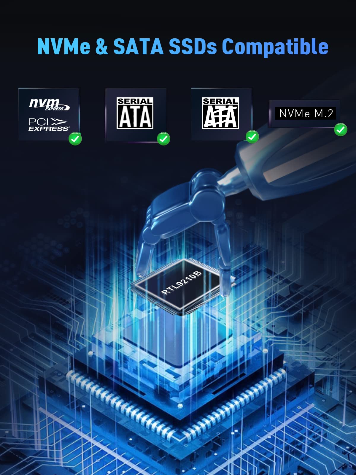M.2 Nvme Sata Ssd Enclosure Adapter ,V Vcom Tool Free Usb 3.2 Gen 2 10Gbps Nvme Pci E 6Gbps Sata M Key / B+M Key Solid State Dri