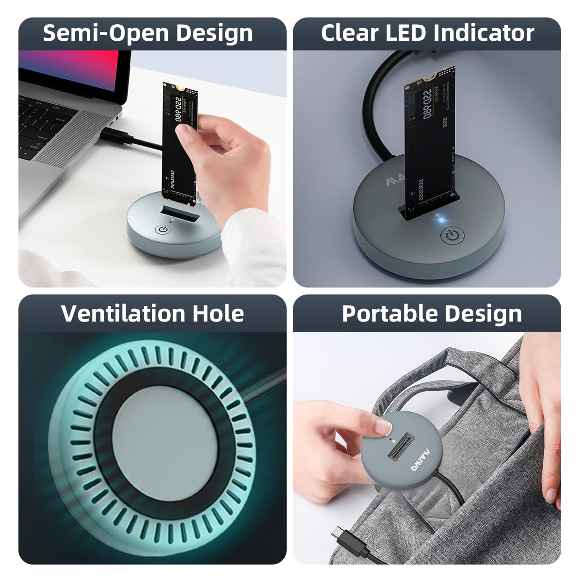 Maiwo M.2 Nvme Sata To Usb C Adapter, M.2 Pcie Nvme Ngff Sata Ssd Docking Station, Usb3.2 Gen2X1 10Gbps Speed With Uasp Trim, 4Tb Capacity, Tool Free M.2 Enclosure Case