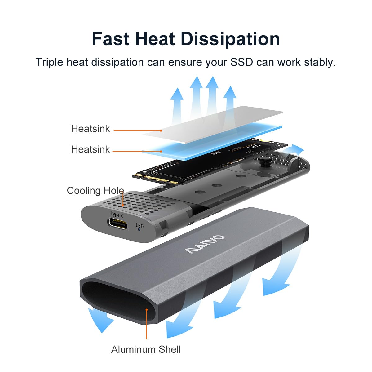 Maiwo M.2 Nvme Ssd Enclosure, Usb 3.1 Gen 2 (10 Gbps) To Nvme Pci E M.2 Ssd Reader Support Uasp For Nvme Ssd Size 2230/2242/2260/2280(Up To 4Tb) (M.2 Nvme)