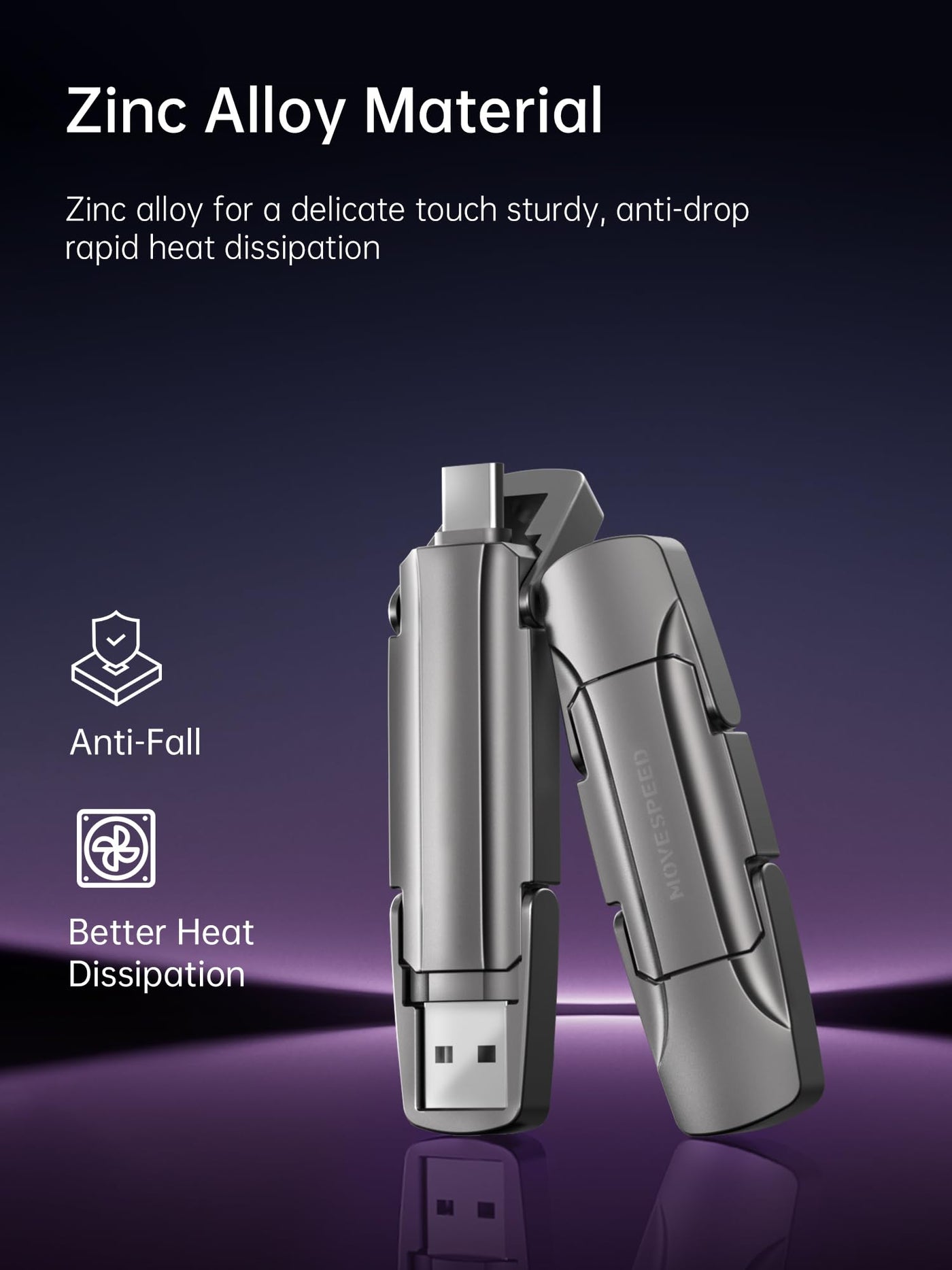 ?Upgraged Usb 3.2 Gen2 Flash Drive 1000Mb/S Transmission?Move Speed Vpro Series Solid State Usb Drive Provides Up To 1000Mb/S Of Read And Write Speed. Save More Time And Effort When Transferring And Uploading Files. Greatly Improve Work Efficiency. In Addition, The Upgraded Ssd Class Flash Drive Has Greatly Improved The Heat Dissipation Performance. While Providing High Speed, It Also Optimizes The Heat Dissipation Performance And Improves The User Experience. | ?Data Backup And Dual Interfaces?Move Speed Vpro Series Usb C Flash Drive Have Usb3.2 Gen 2 & Type-C Dual Interfaces. Usb 3.2 Gen2 Interface Is For Computer, Laptop, And Type-C Interface Is For Android Phone And Phone With Usb C Port. Dual Interfaces Are More Convenient For Data Transfer Between Different Devices, So As To Get Rid Of The Cable And Software, Let You Switch Easily Storage Space. No More Worrying About Phone Storage Issues! | ?Ssd Level Chip & High-Quality Metal Case?Move Speed Usb3.2 Gen2 Flash Drive Is Made Of Advanced Ssd Level Chip Technology And High-Quality Zinc Alloy Materials. Sata Solid-State Drives Are Now Condensed Into The Form Of Usb C Flash Drive. It Only Takes 1 Seconds To Transmit 1Gb File, Amazing Speed Experience. What'S More, It Has Excellent Waterproof, Dust-Proof, Anti-Drop, High Temperature And Anti-Magnetic Properties. | ?Wide Compatibility And Easy To Use?This Usb 3.2 Gen2 Flash Drive Is Universal For Android Usb-C Phone, Desktop, Laptop, Car Audio System, Smart Tv And More. Real Plug And Play, Extremely Simple To Use. Plugs Directly Into Your Android Phone Or Computer, No Cable And Software Required. The Usb C Flash Drive Comes With A Keychain Leather Case For Easy Portability And Storage. Come And Use This Ssd Flash Drive To Transfer Files For You!! | ?What'S In The Box?Package Included: Move Speed V Pro Series Solid State Usb Drive X1, Flash Drive Leather Case X1, User Manual X1, 7X 24 Friendly Customer Service And 30-Days 100% Refund If Any Displeasure, Lifetime Tech Support. Our After-Sale Team Will Deal With Your Issue In 24 Hours.