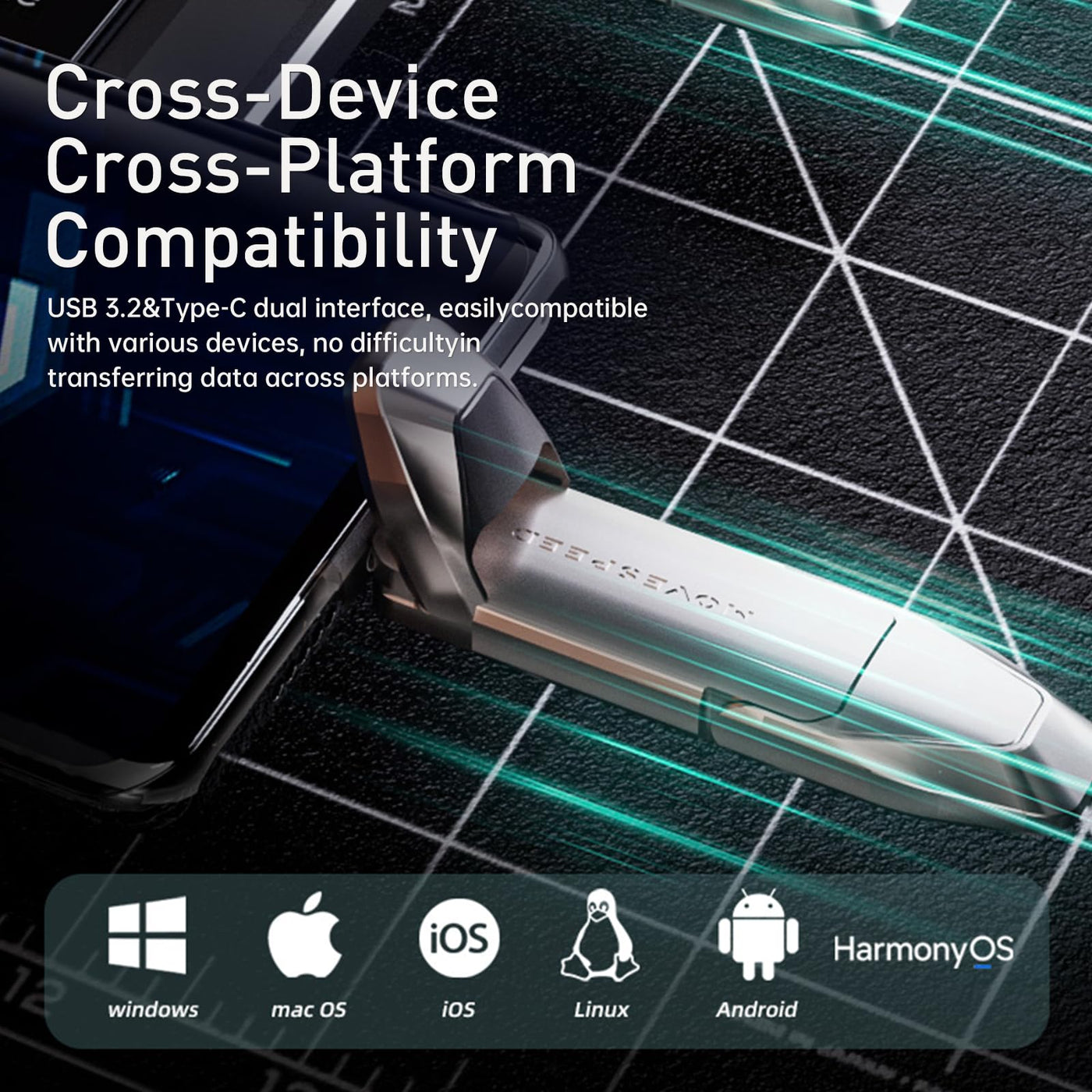 Move Speed 2Tb Solid State Flash Drive Usb 3.2 550Mb/S High Speed, Type C Usb Dual Interface Drive Usb Gen 2 Thumb Drive With Le
