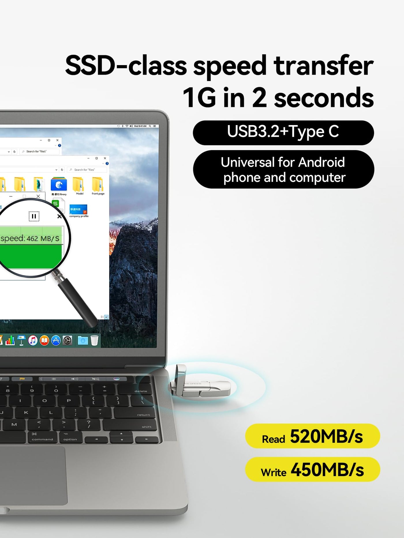 Move Speed 512Gb Usb 3.2 Solid State Flash Drive 520Mb/S High Speed Type C Usb Drive Usb Gen 2 Thumb Drive With Keychain Leather