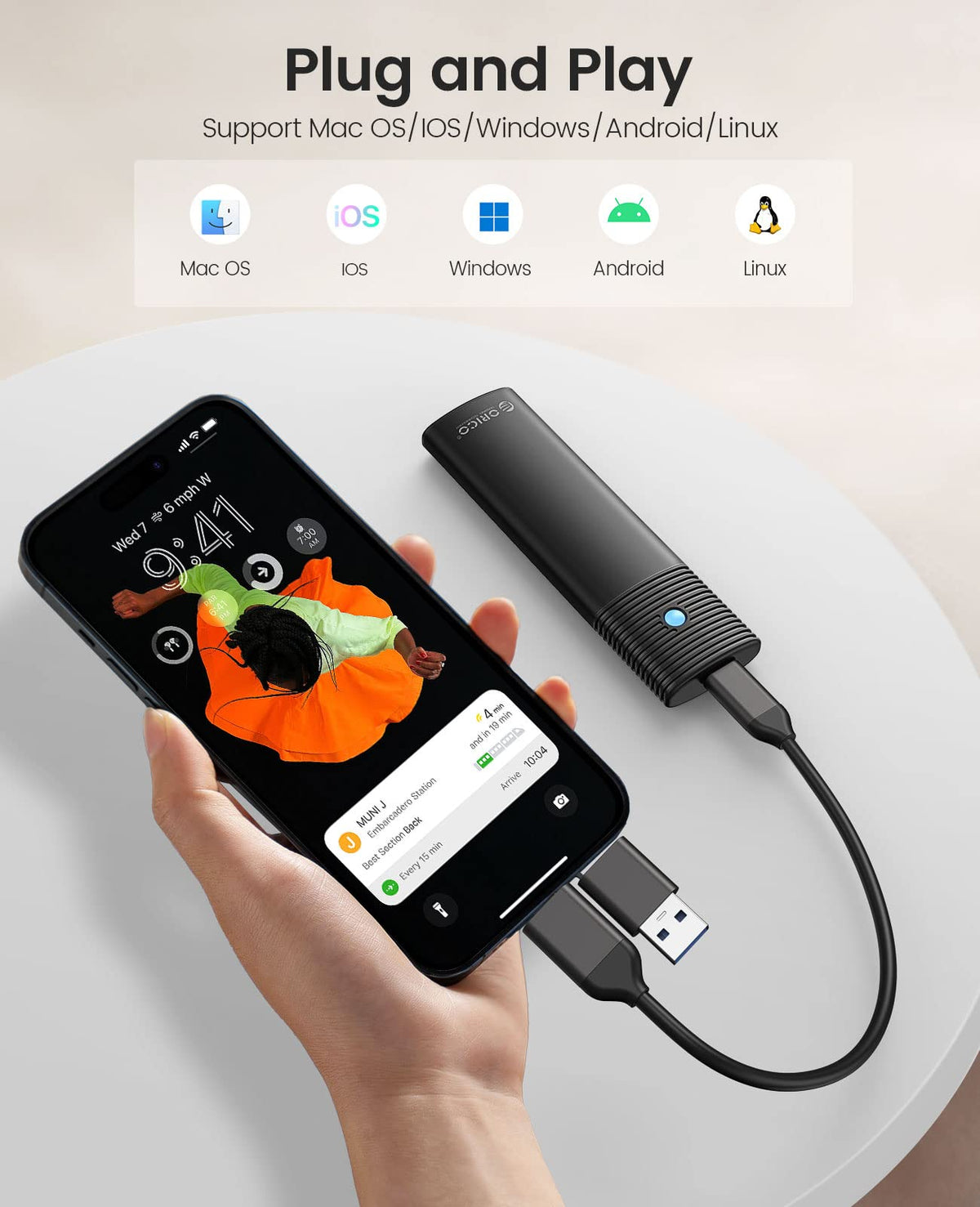 ORICO Aluminum M.2 NVMe SSD Enclosure , Tool Free 10Gbps USB C Adapter, USB 3.2 M.2 NVMe Reader, External SSD Case Thunderbolt 3 Compatible, Supports 4TB 2230/2242/2260/2280 PCIe M Key SSDs PWM2 BK