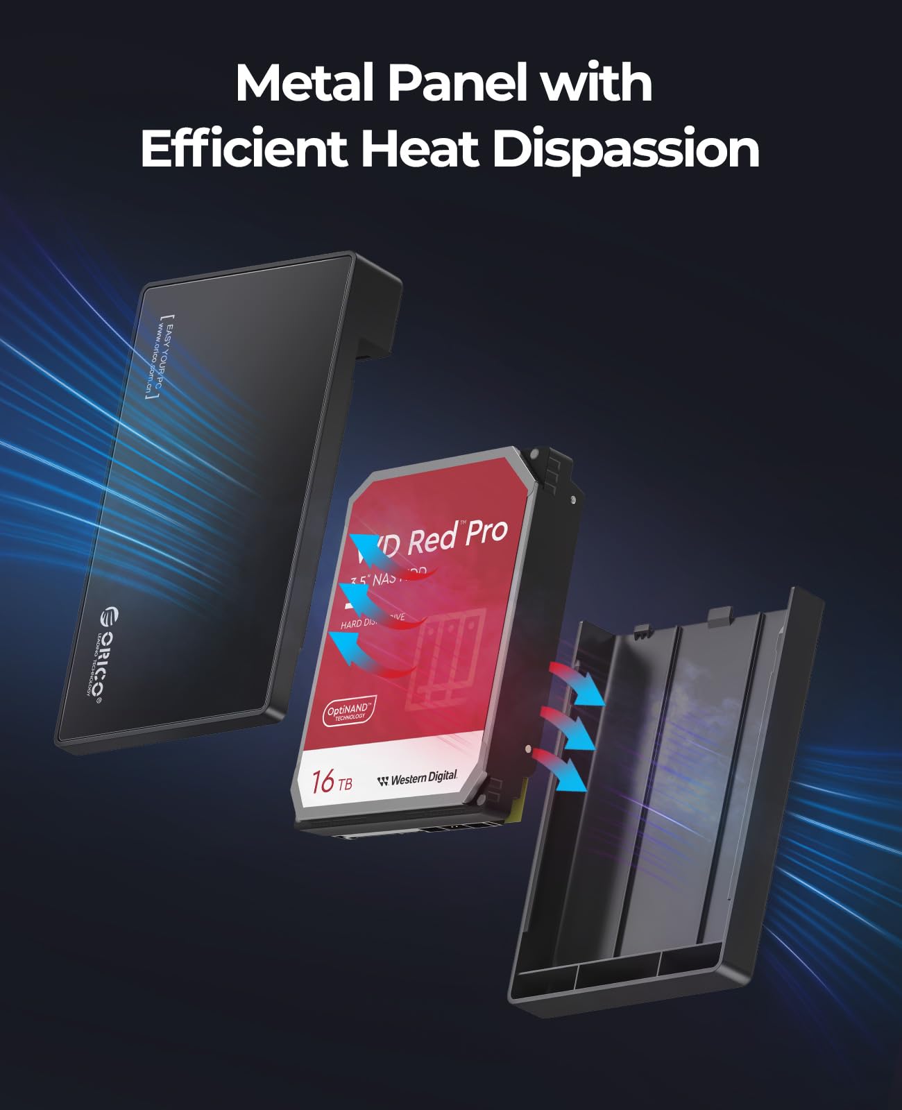 ORICO USB 3.0 External Hard Drive Enclosure for 3.5/2.5 Inch SATA Hard Drives/SSD Up to 20 TB, 3.5'' Tool Free HDD Enclosure with 12V/2A Power Supply and UASP Acceleration (3588US3)