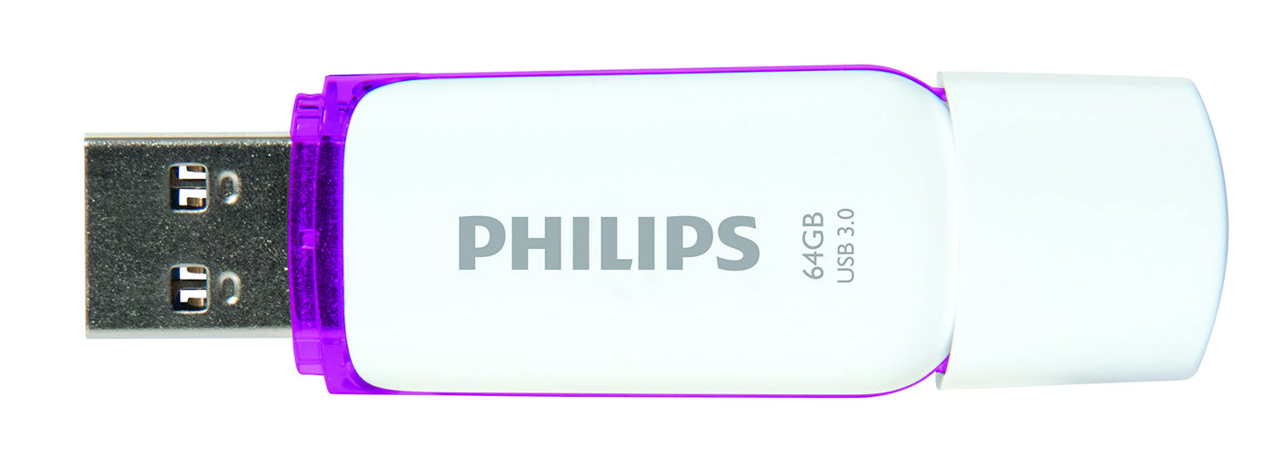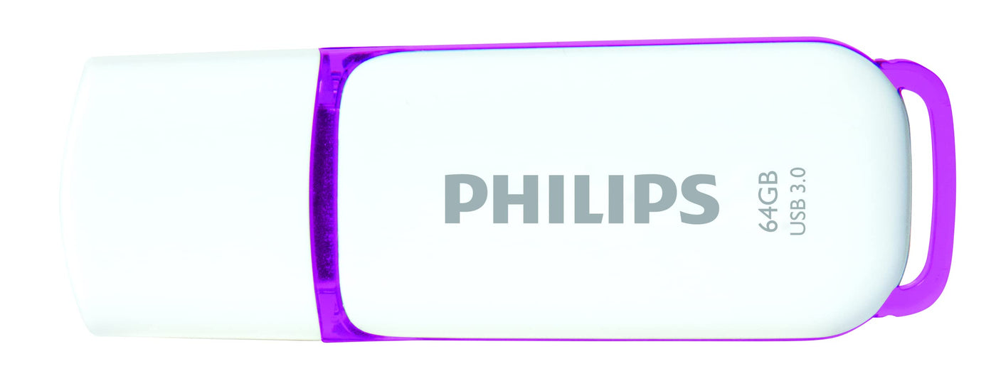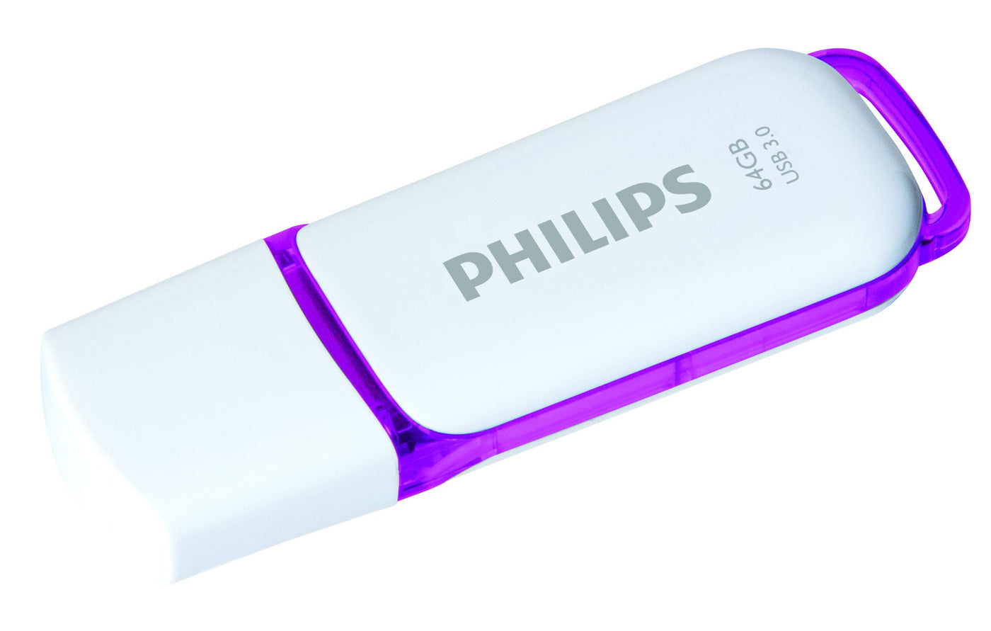 Philips High Speed 64Gb Flash Drive, Snow Edition Usb 3.0 - White/Purple, 100Mb/S